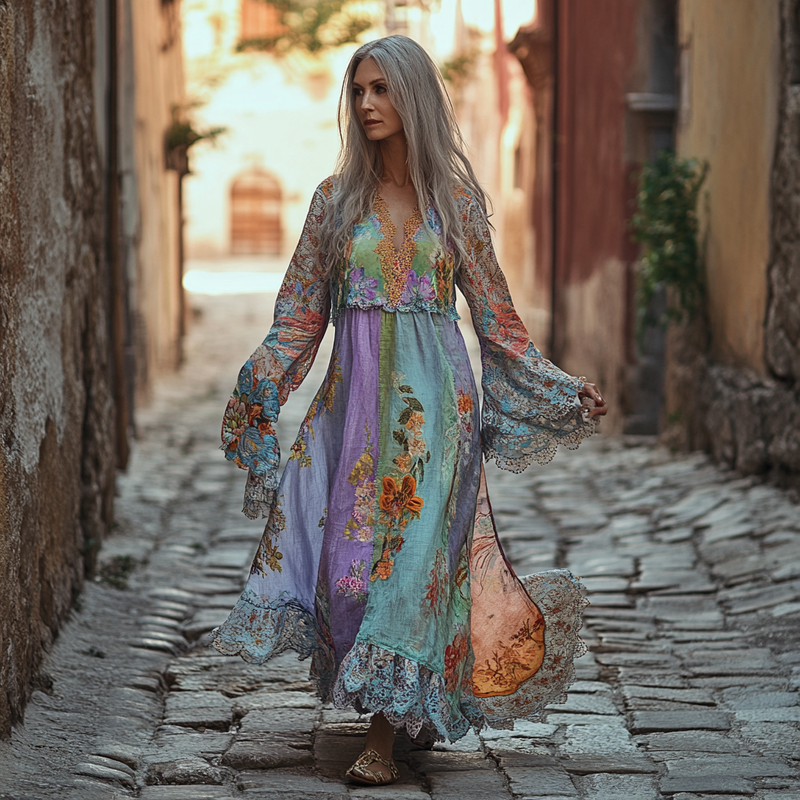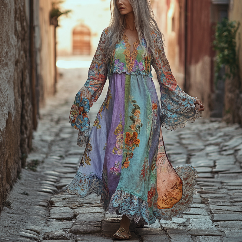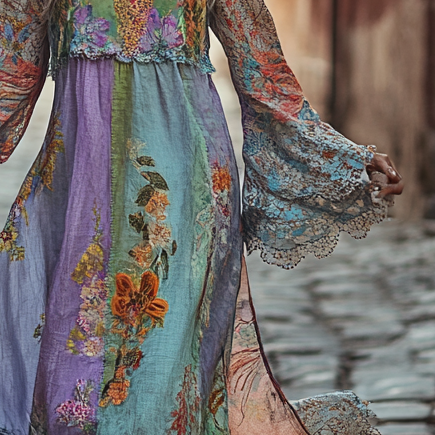 Vintage Loose Linen Patchwork Dress 480b