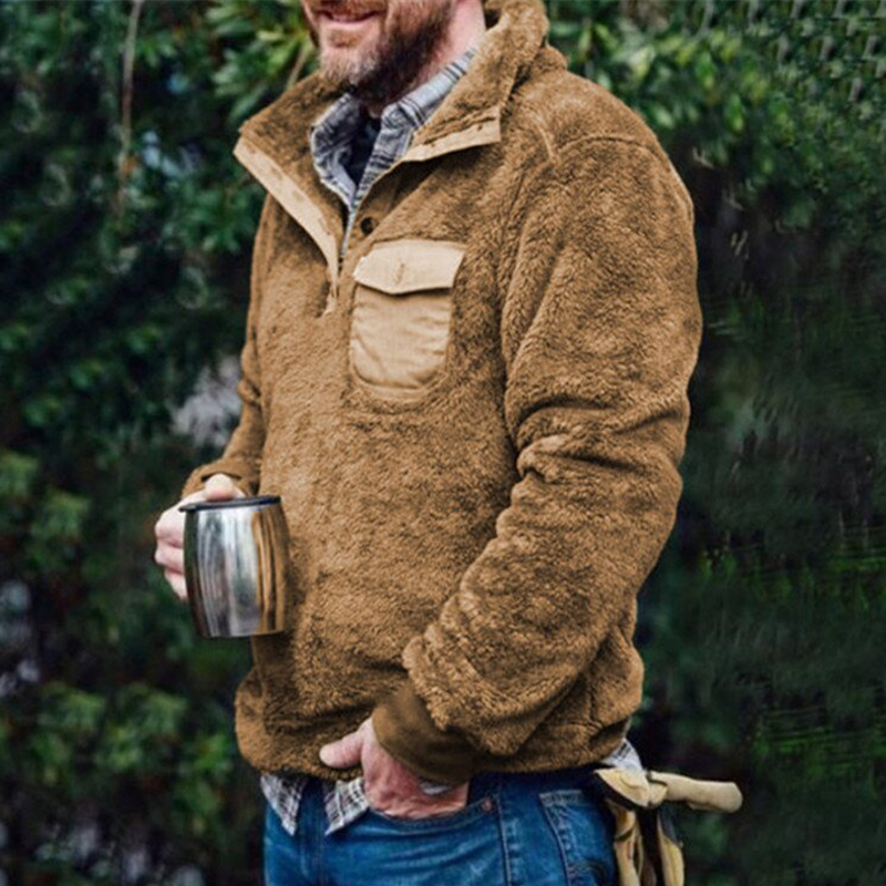 Casual flannel plush solid color pocket pullover