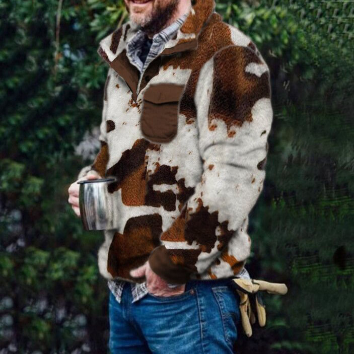 Casual flannel plush zebra pattern pocket pullover
