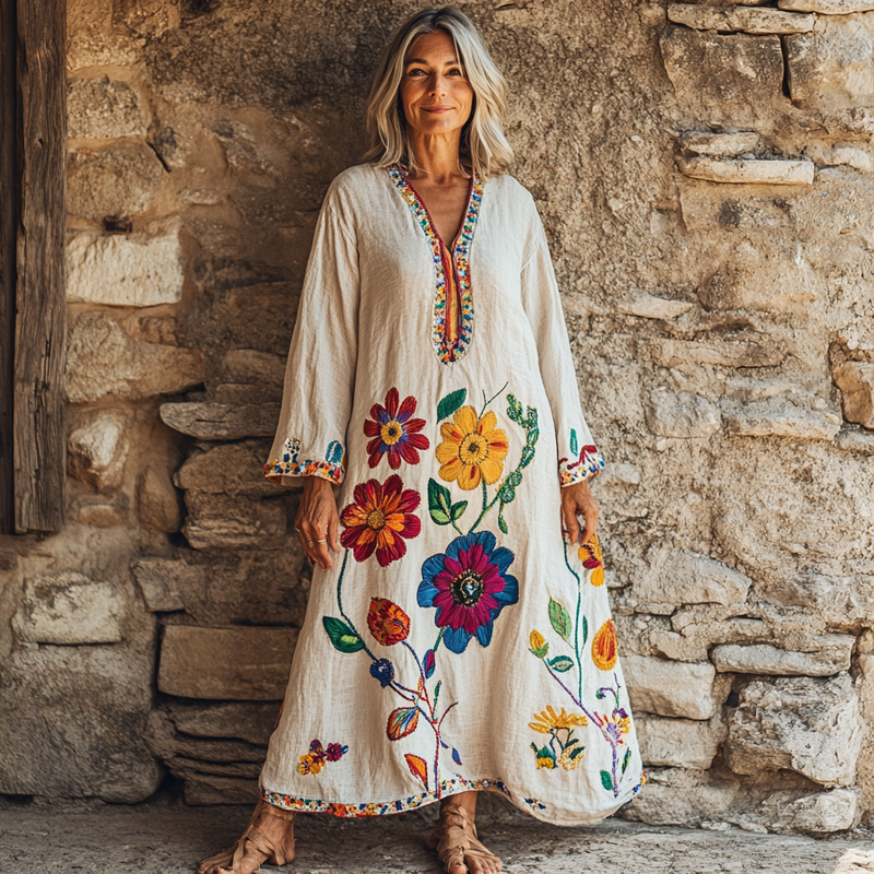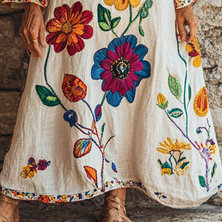 Vintage Loose Linen Patchwork Dress 2565