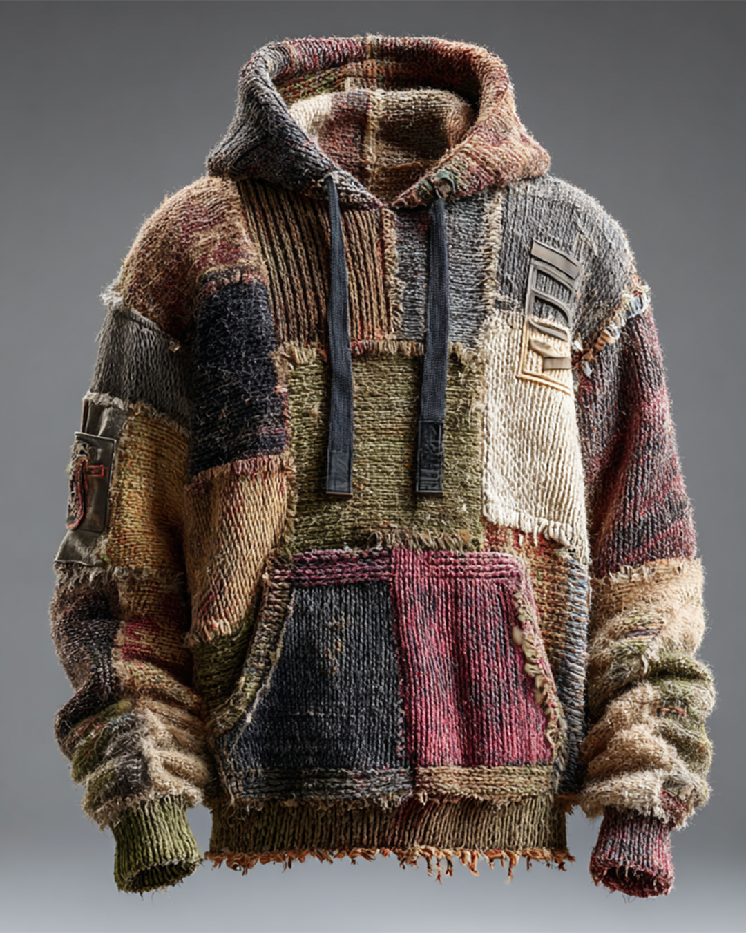 Men's Viking-Style Faux Fur Collar Embroidered Hoodie and Pants Two-Piece Set 3552