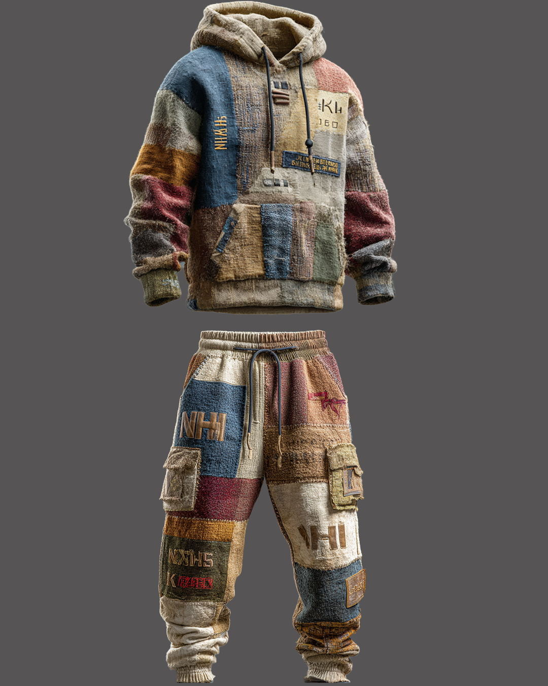 Men's Spring Fashion Color Block Patchwork Top & Pants Two-Piece Set 3247
