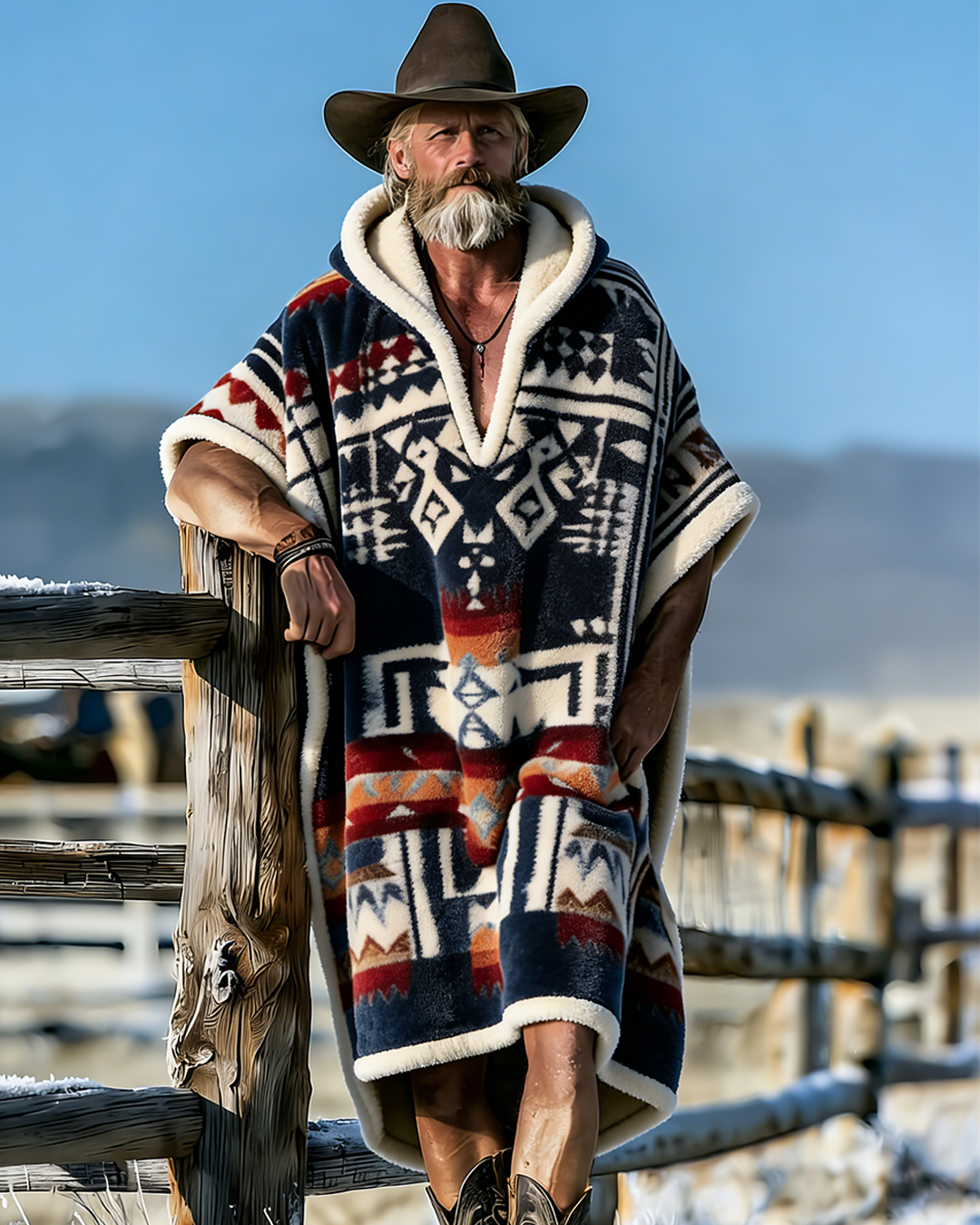 Men's Western Aztec ethnic print warm and stylish hooded kaftan 5722