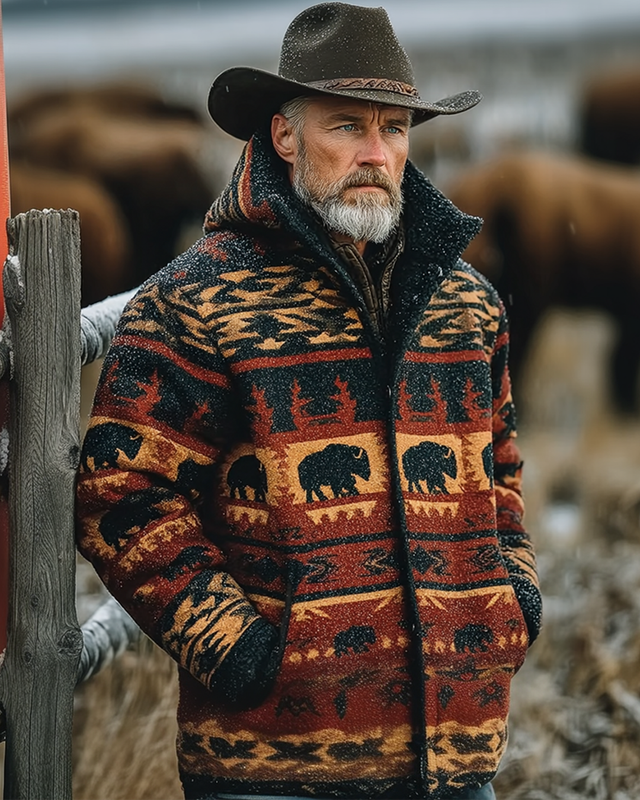 Men's Western Aztec-style printed warm and stylish hooded jacket 6558