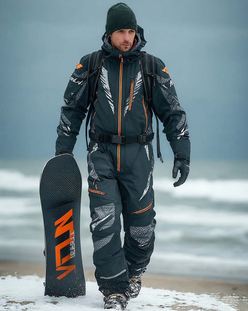 Men's color-blocked warm ski jumpsuit 5599