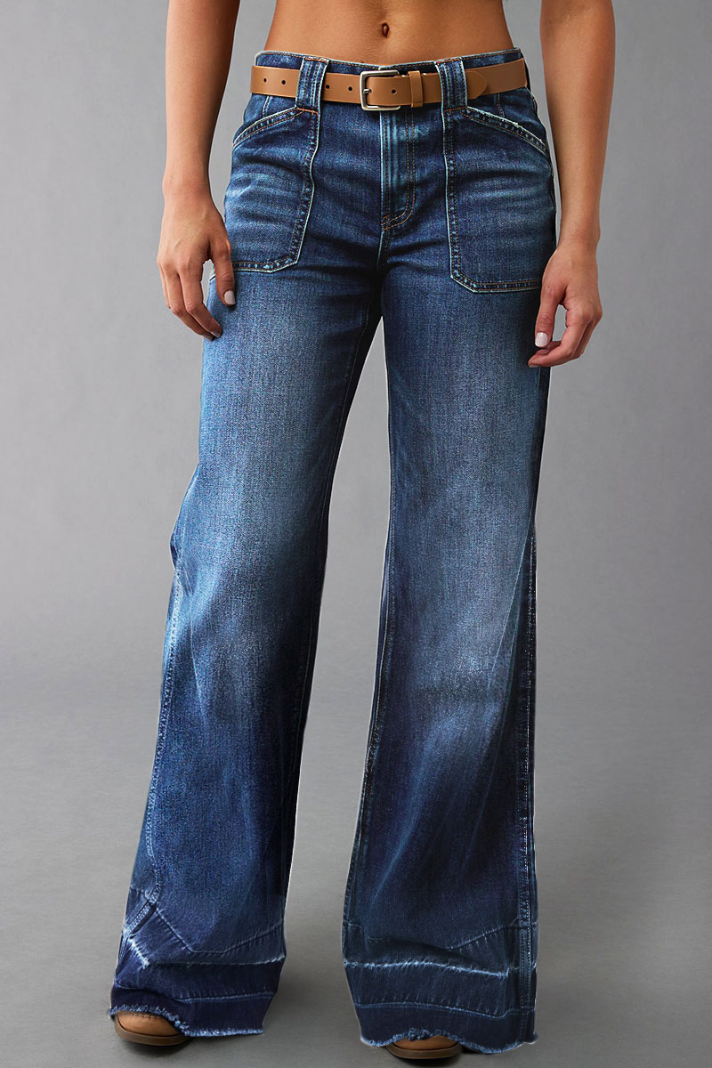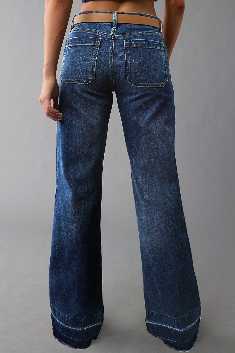 Wash Raw Hem Flap Pocket Wide Leg Low Rise Jeans fa87