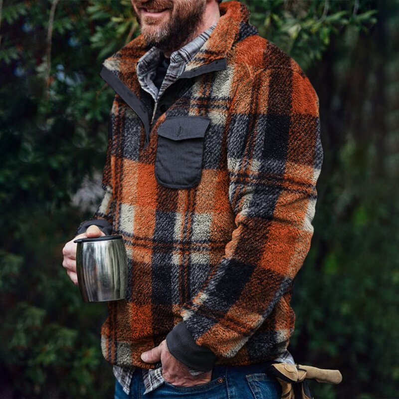 Men's Cozy Plaid Long Plush Pullover
