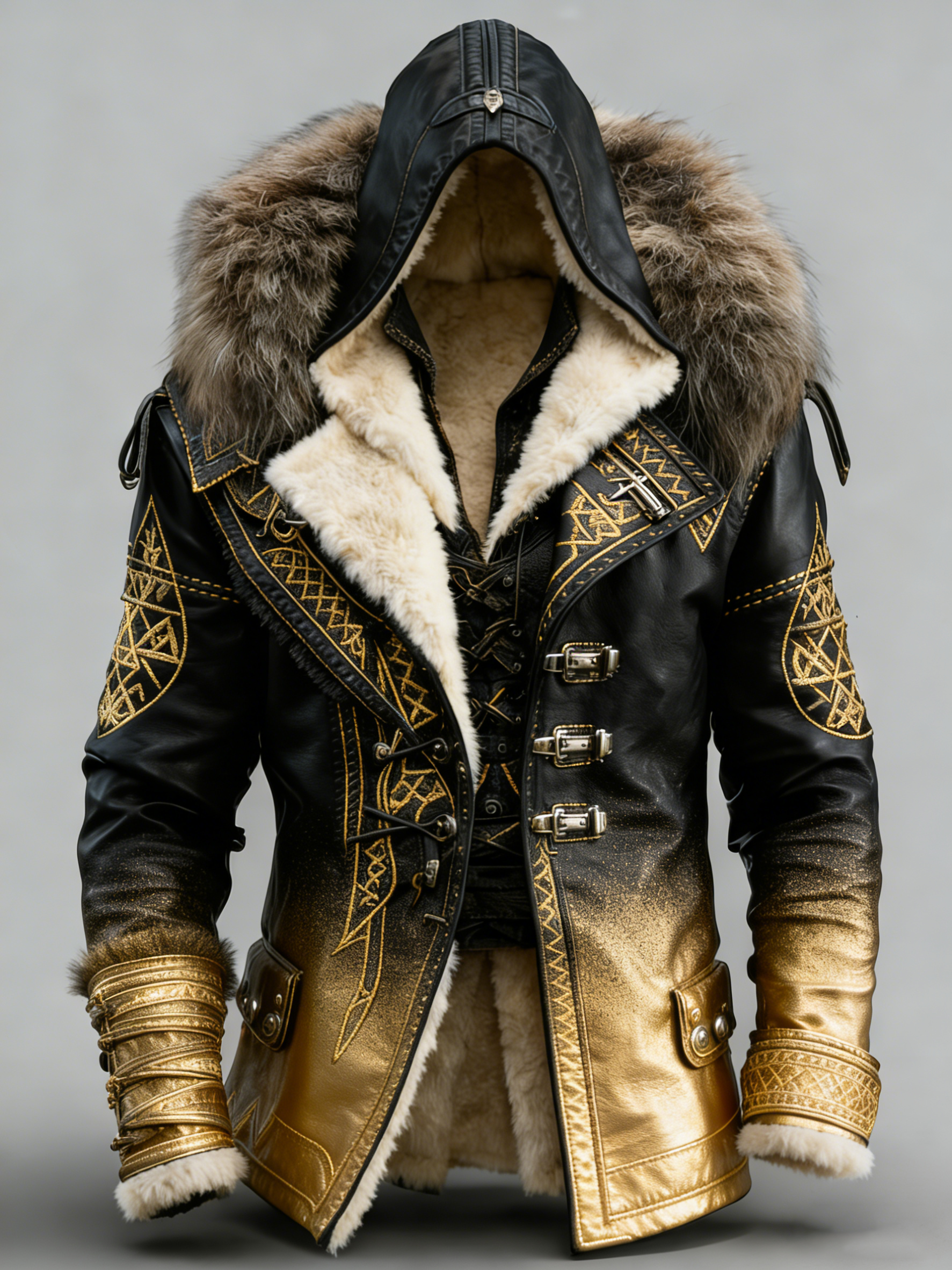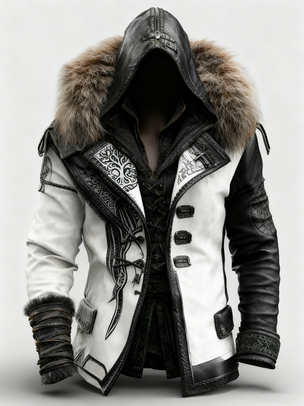 Men's Winter Fashionable Viking Contrast Color Faux Fur Coat 7173