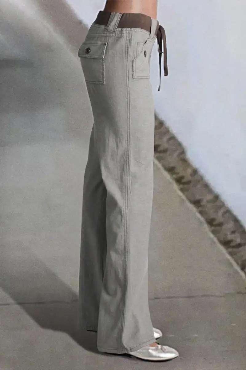 Button Detail Drawstring Low Rise Flare Pants e0ea