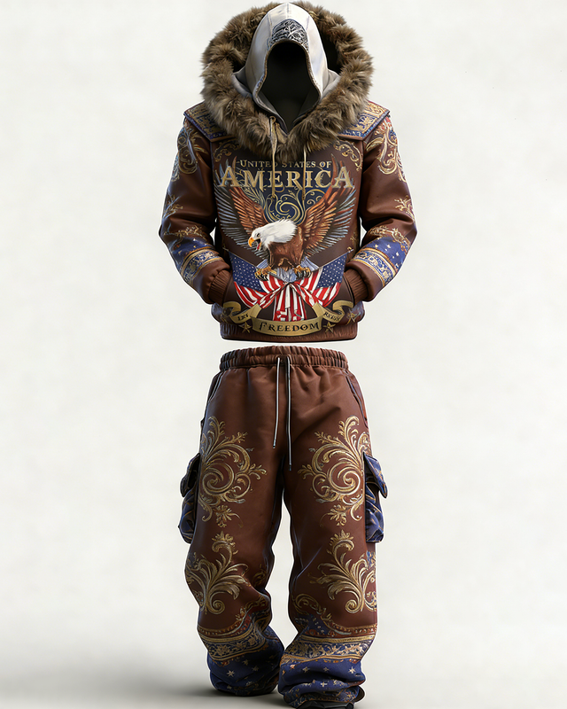 Men's Spring Fashion Outdoor Overalls Celebrating the 250th Anniversary of the United States - Abstract Eagle Head Design 9720
