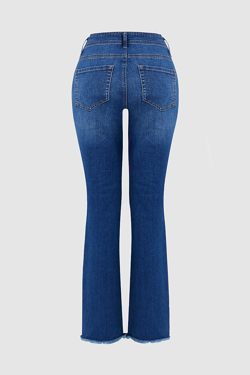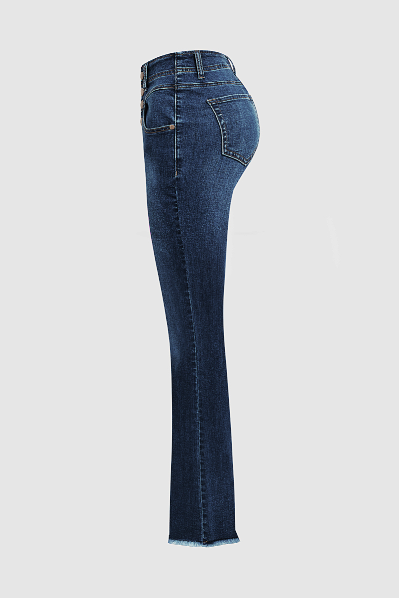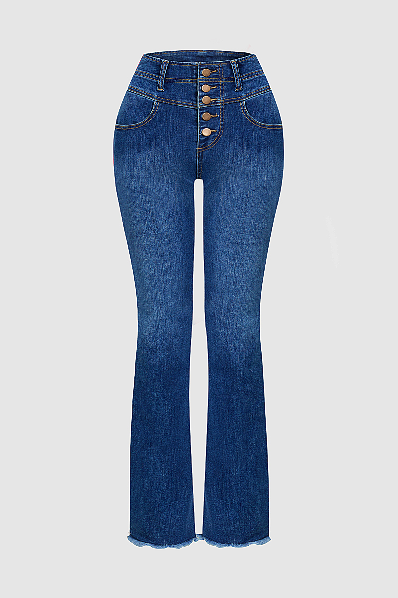 Button Fly Raw Hem Stitch Detail High Waist Bootcut Jeans d5e9