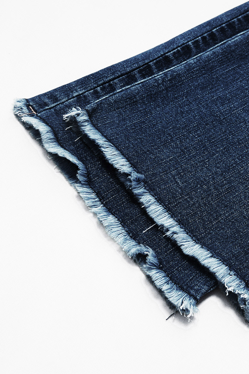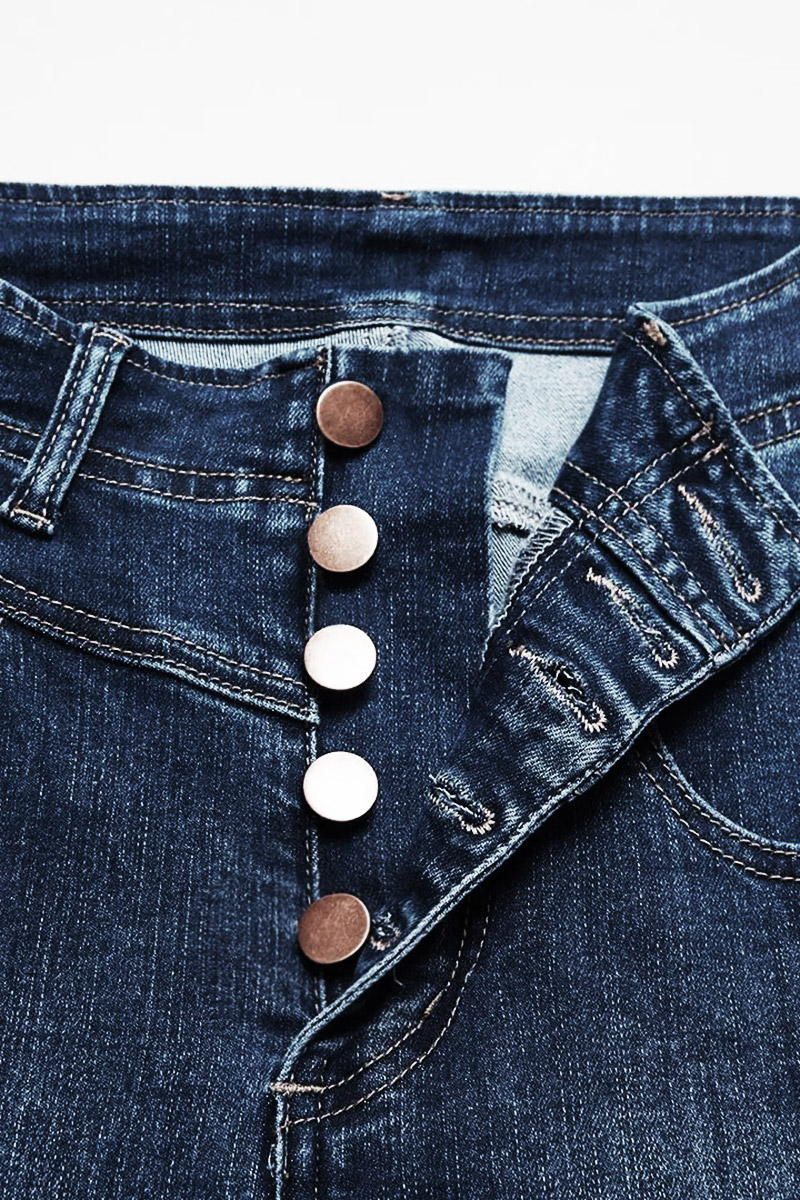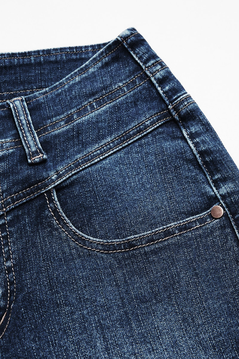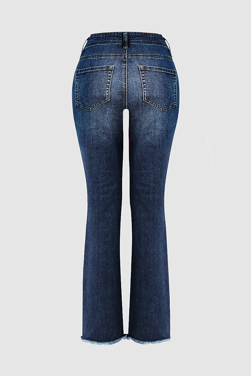 Button Fly Raw Hem Stitch Detail High Waist Bootcut Jeans d5e9