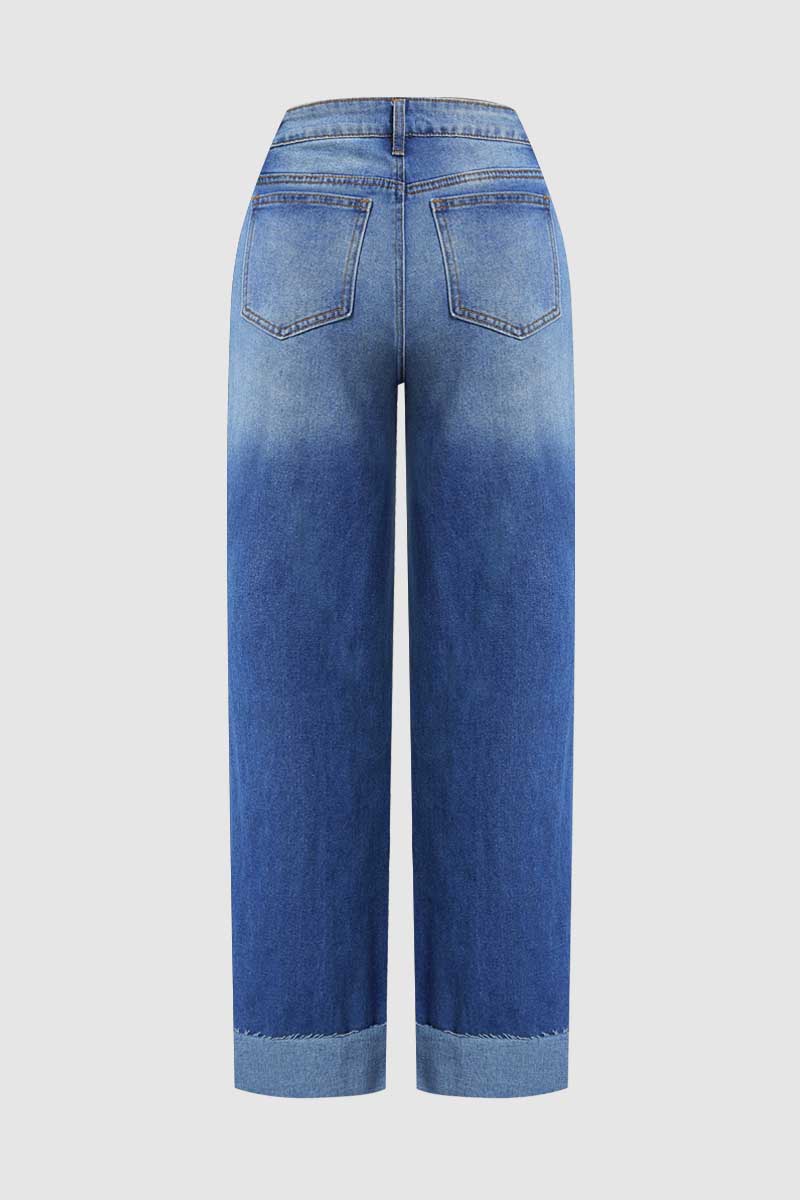 Cut Out Roll Hem Raw Hem Asymmetrical High Waist Straight Leg Jeans abb9