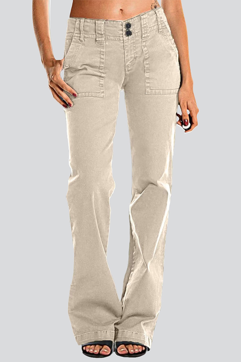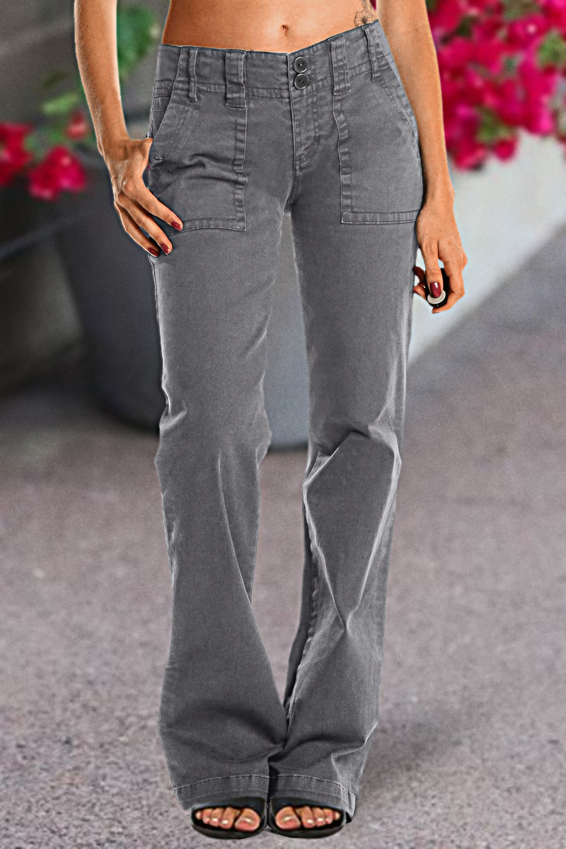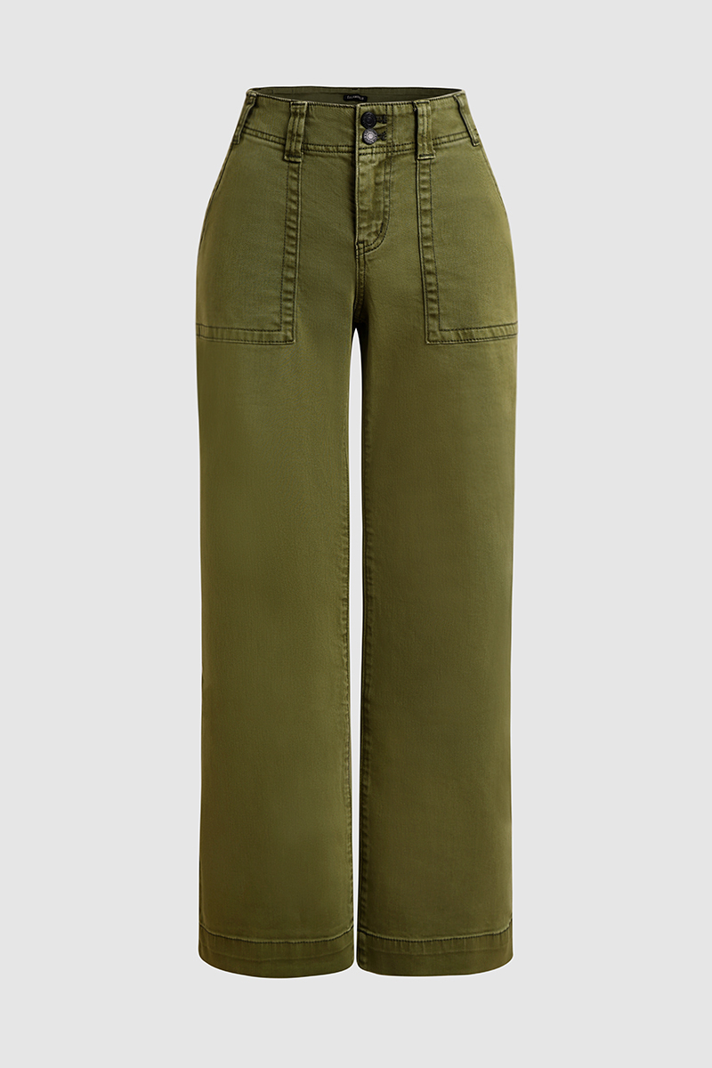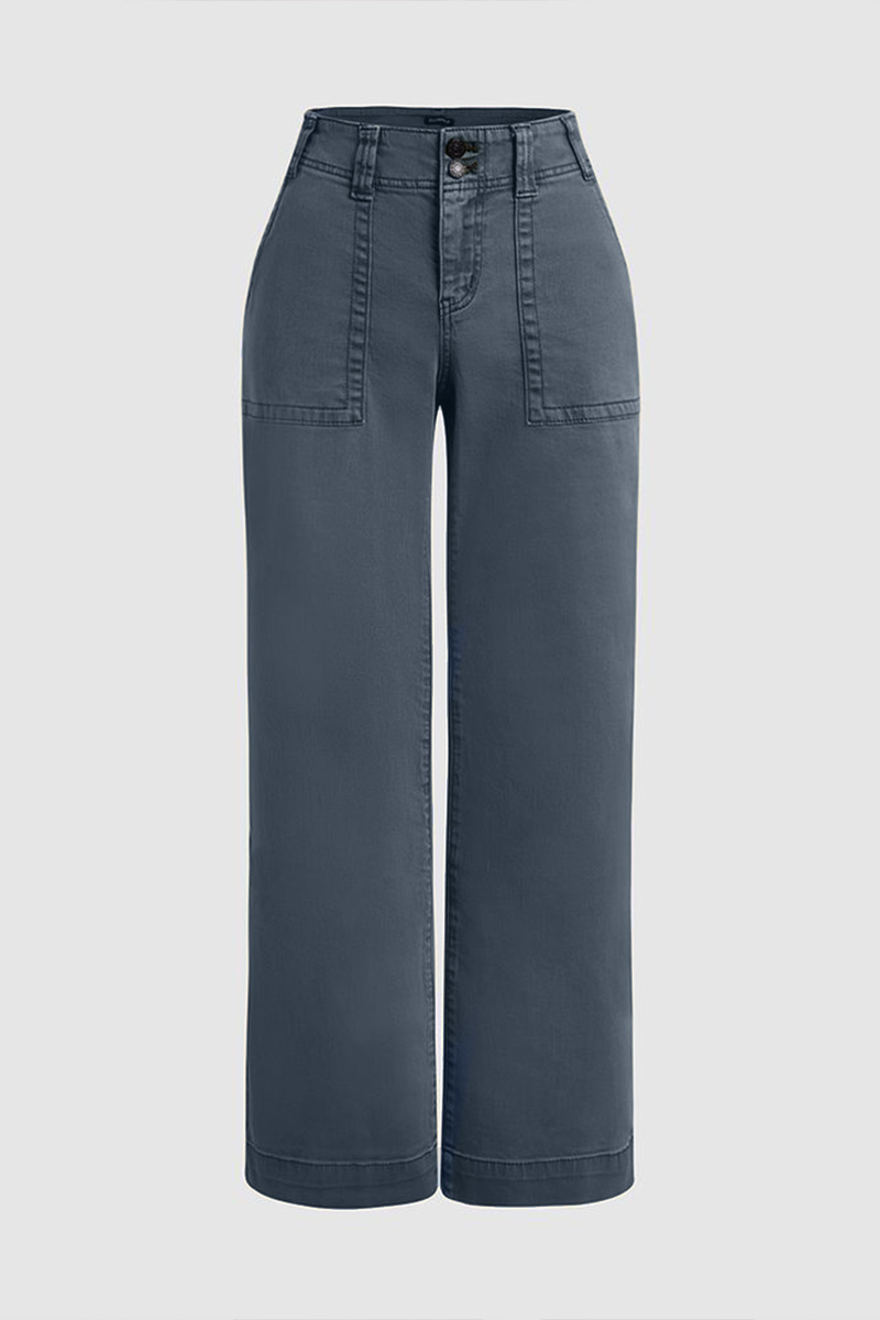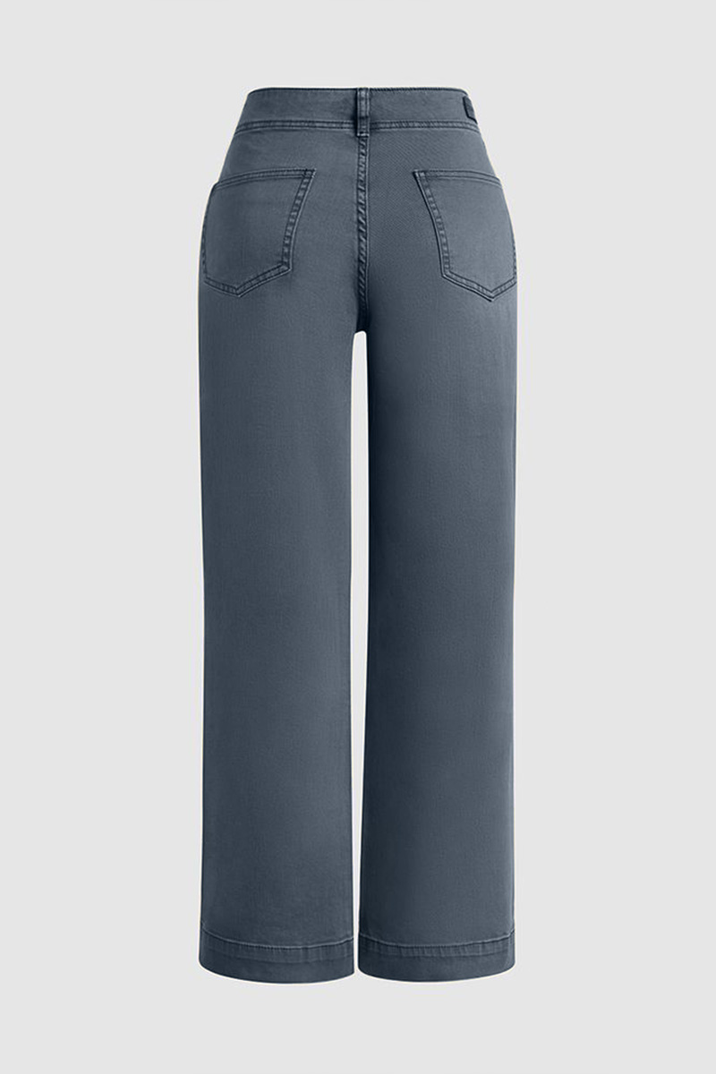Double Button Mid Waist Straight Leg Pants e557
