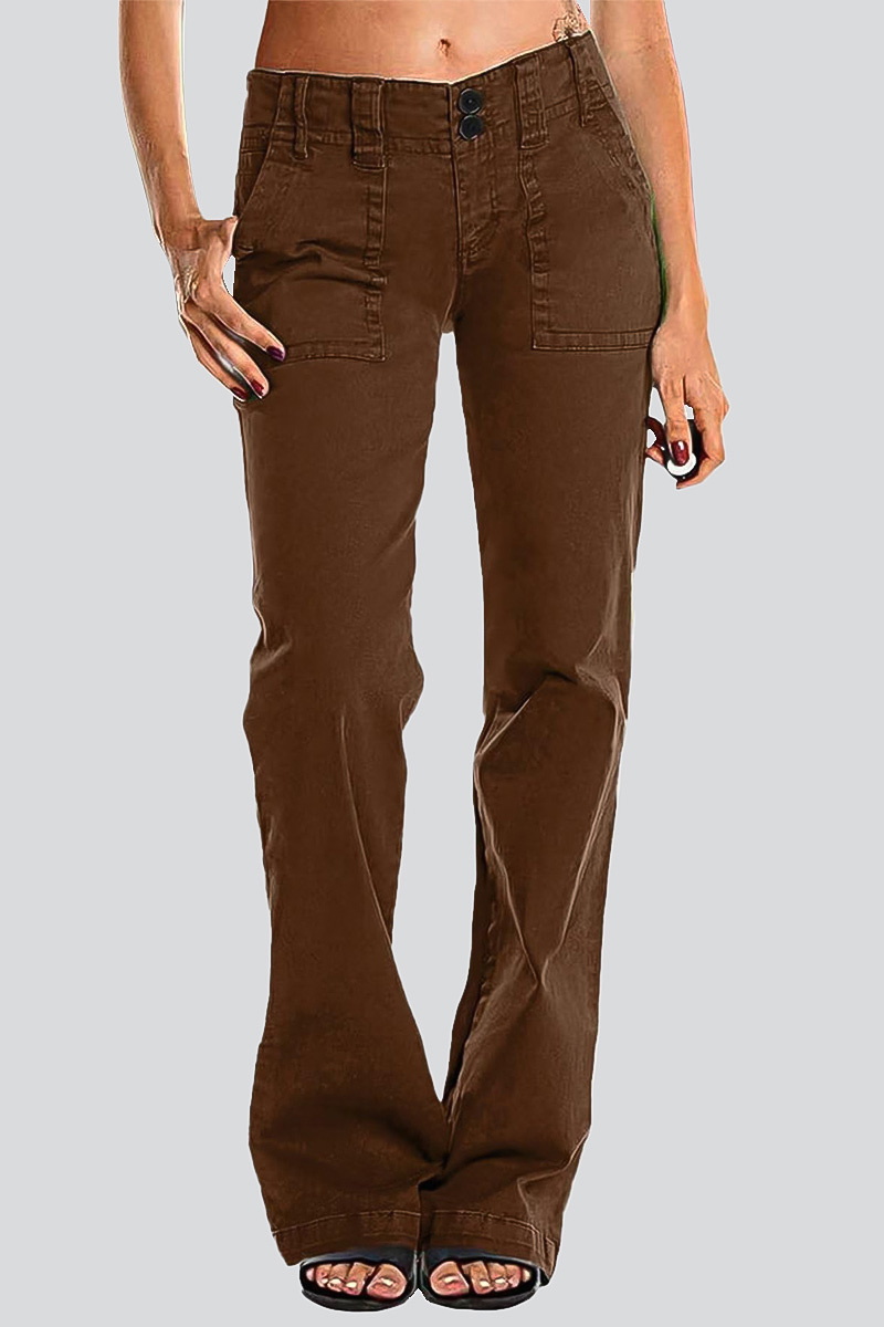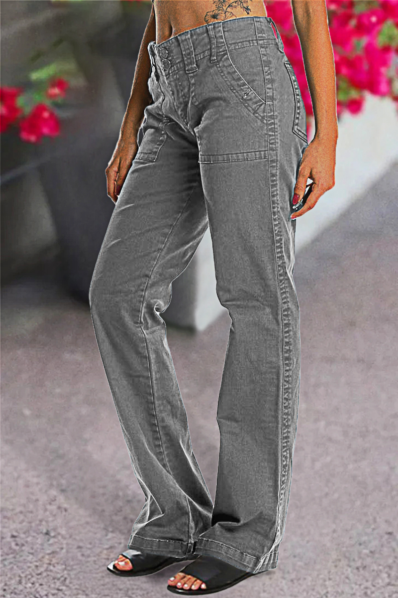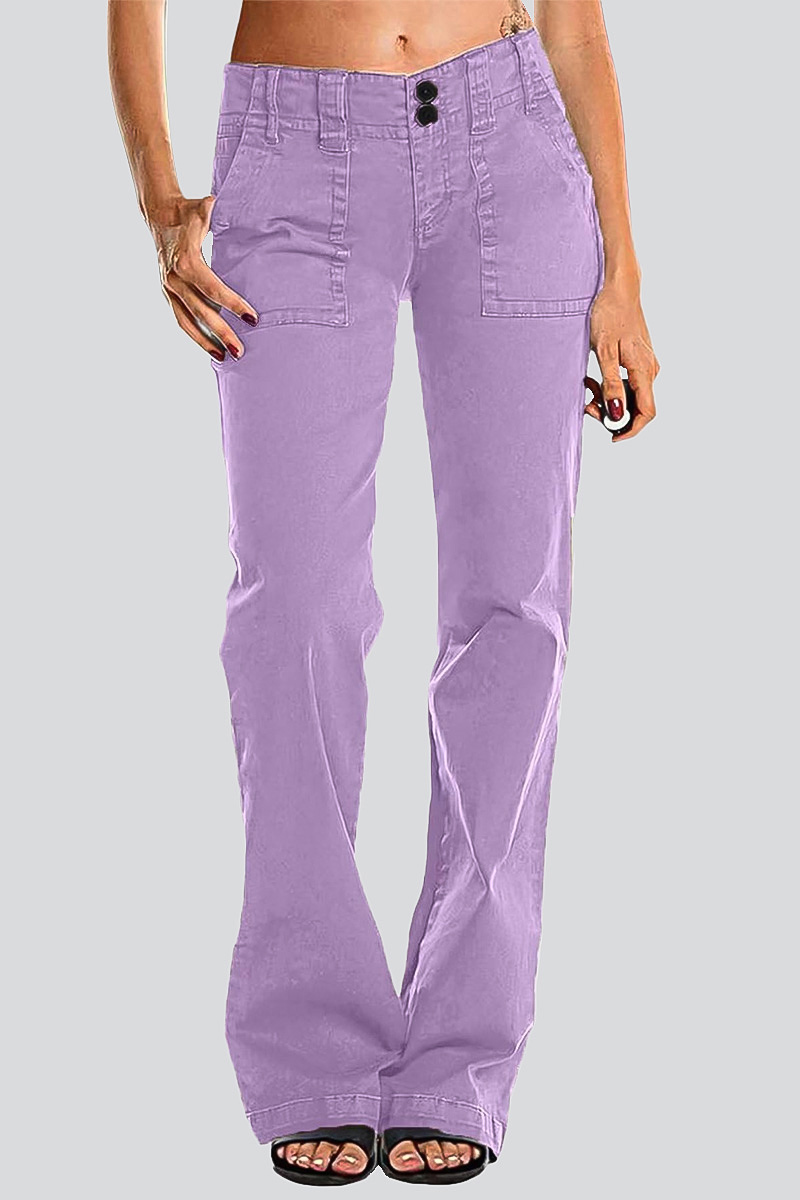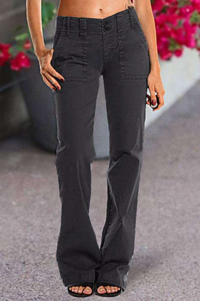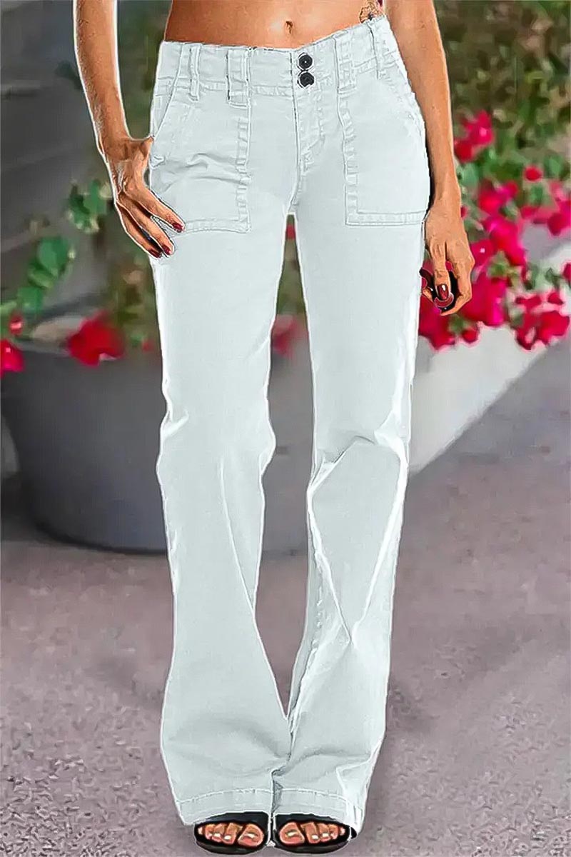 Double Button Mid Waist Straight Leg Pants e557