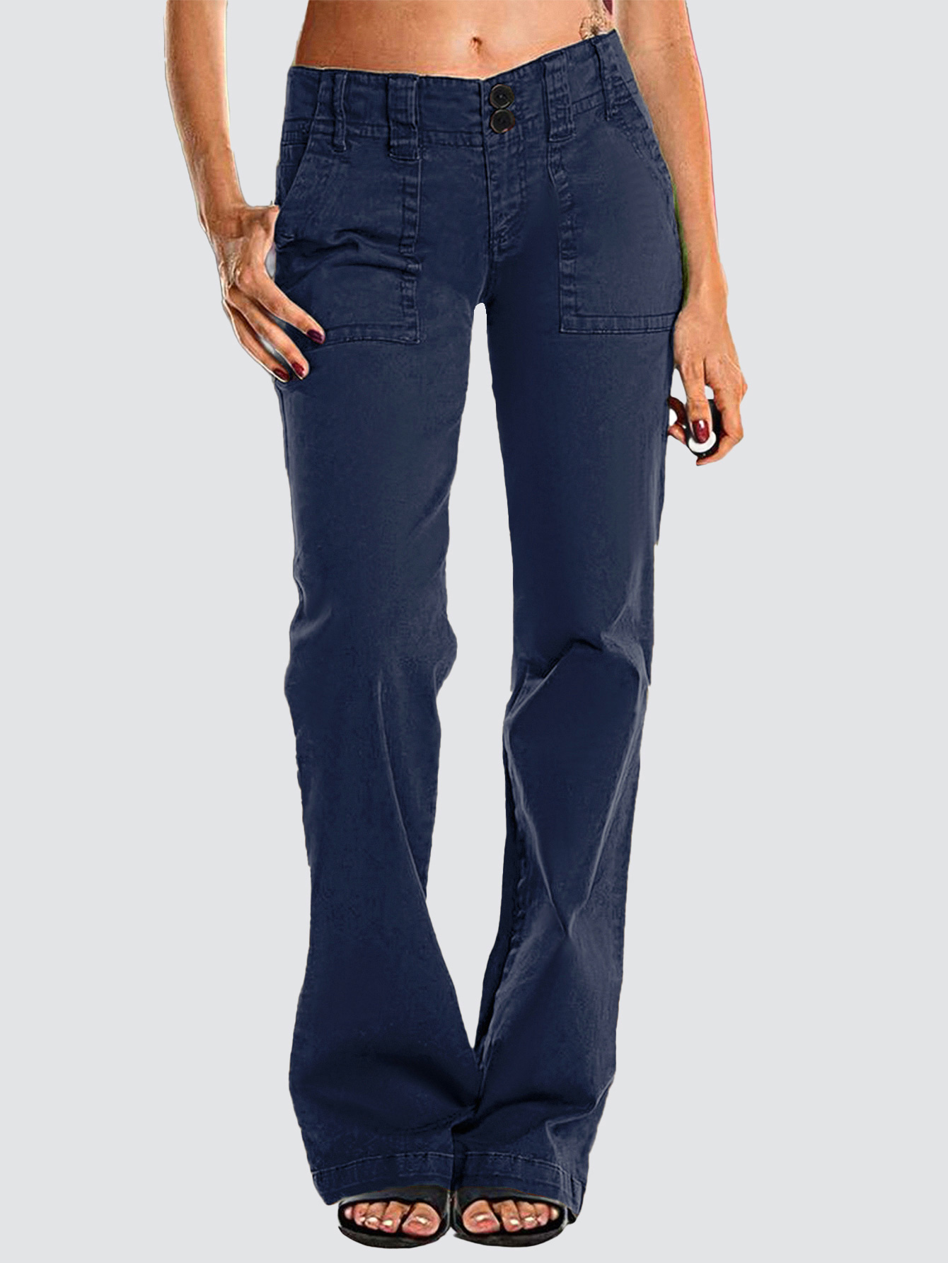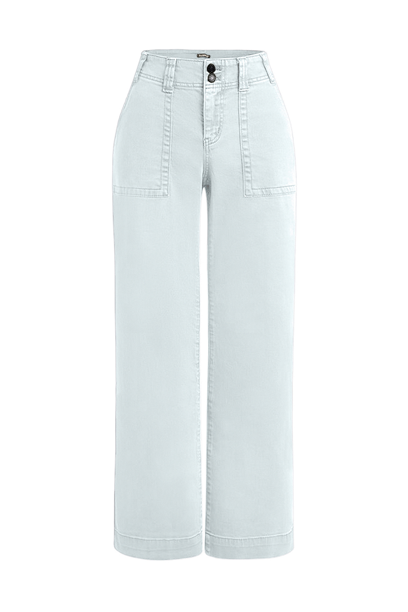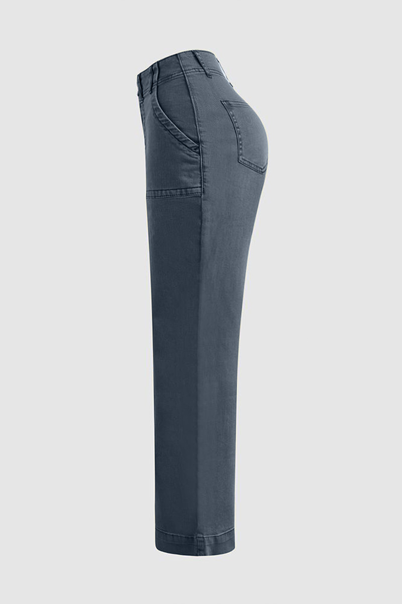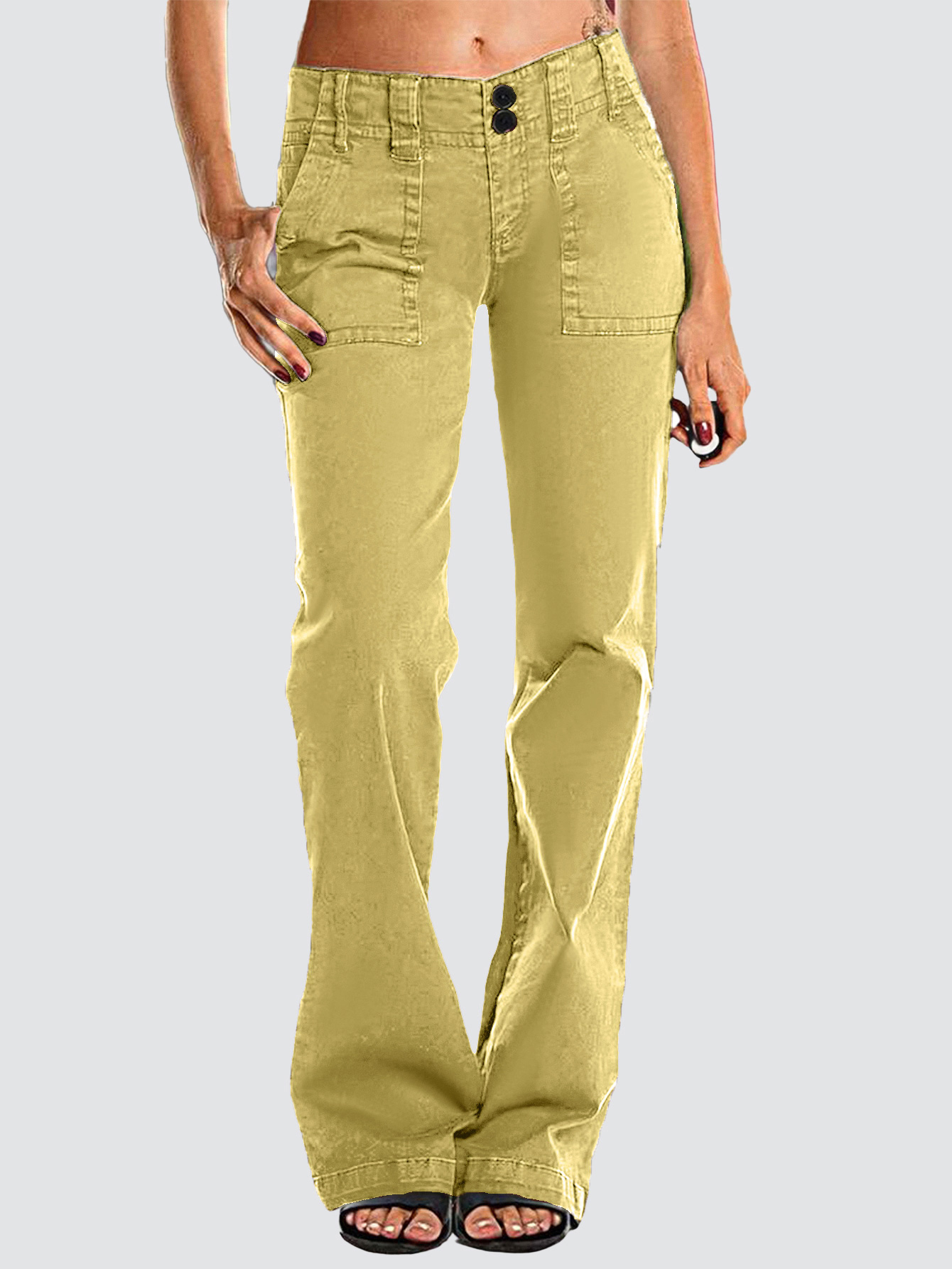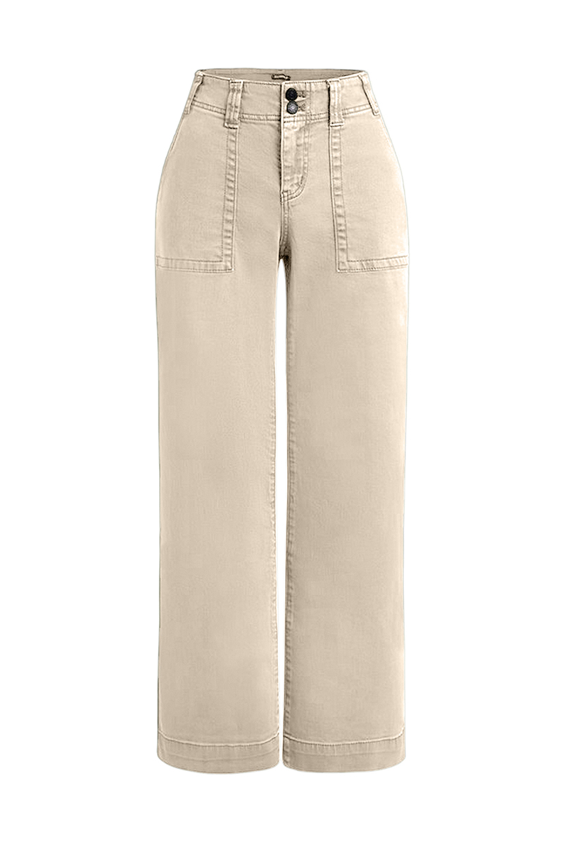 Double Button Mid Waist Straight Leg Pants e557