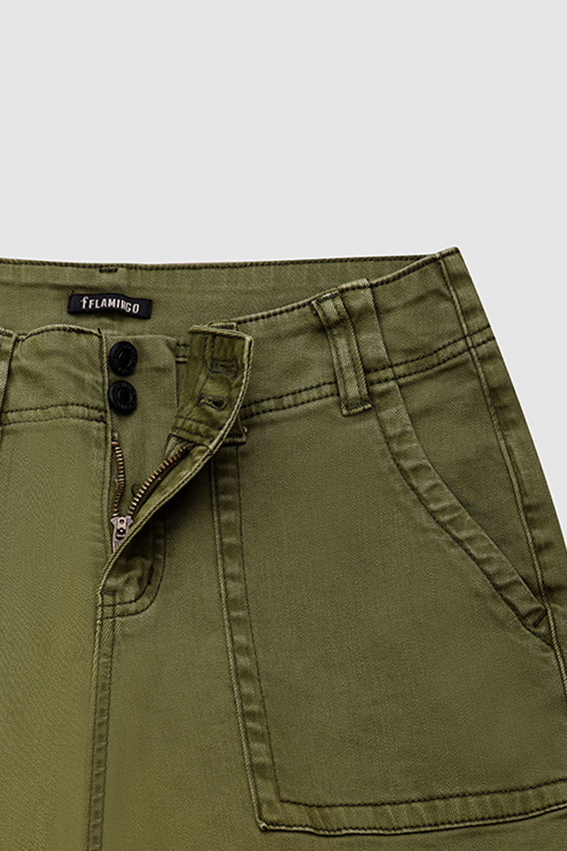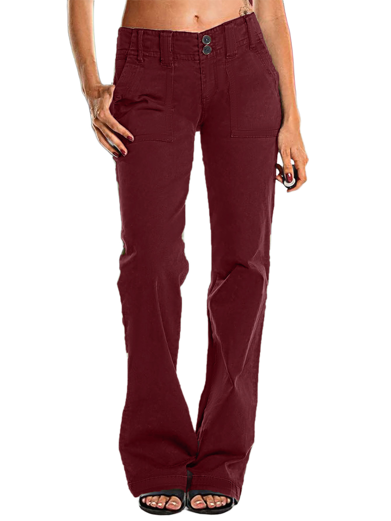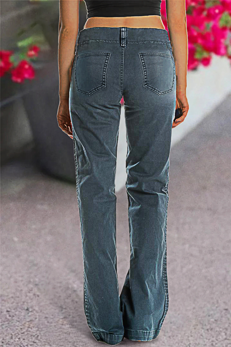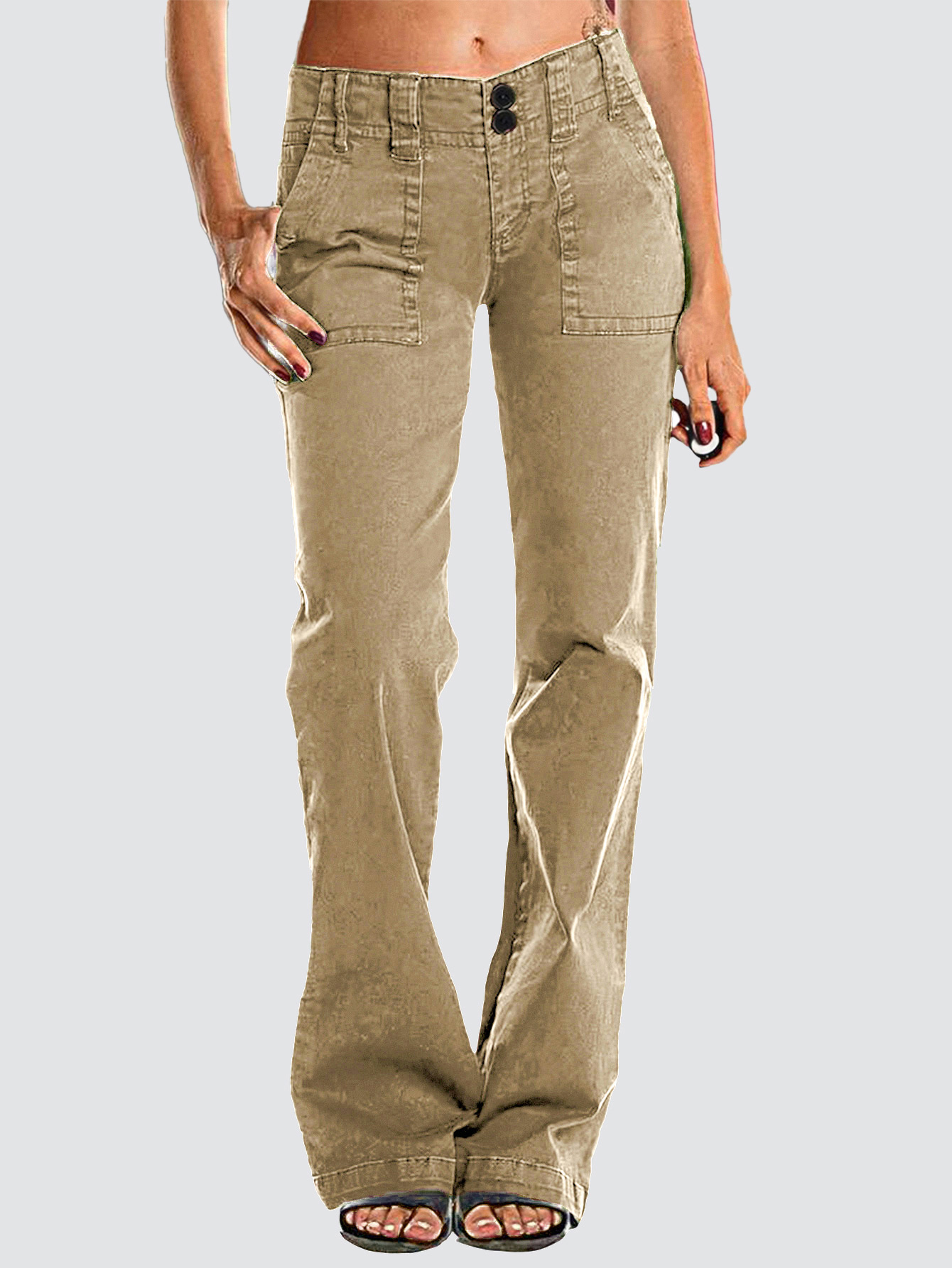 Double Button Mid Waist Straight Leg Pants e557