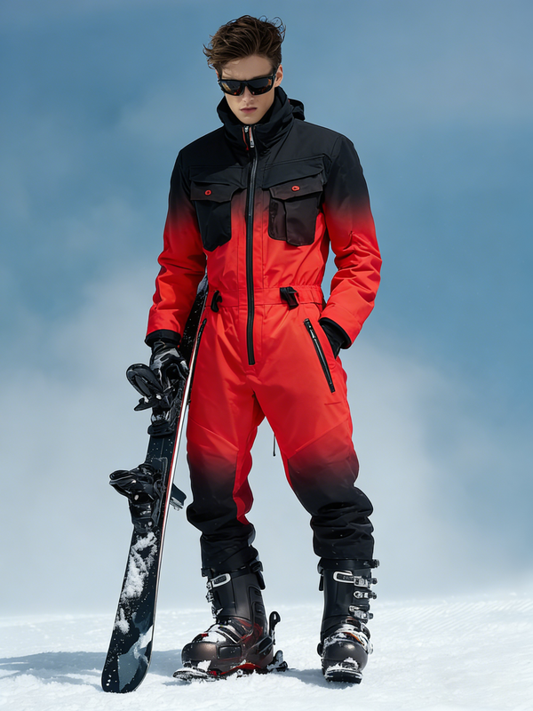 Men's color-blocked warm ski jumpsuit 4686