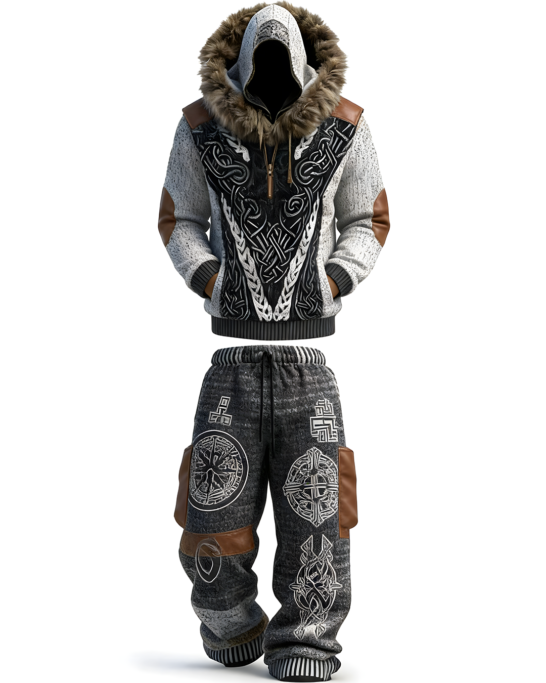 Men's Winter Warmth Faux Fur Hoodie and Pants Two-Piece Set2634