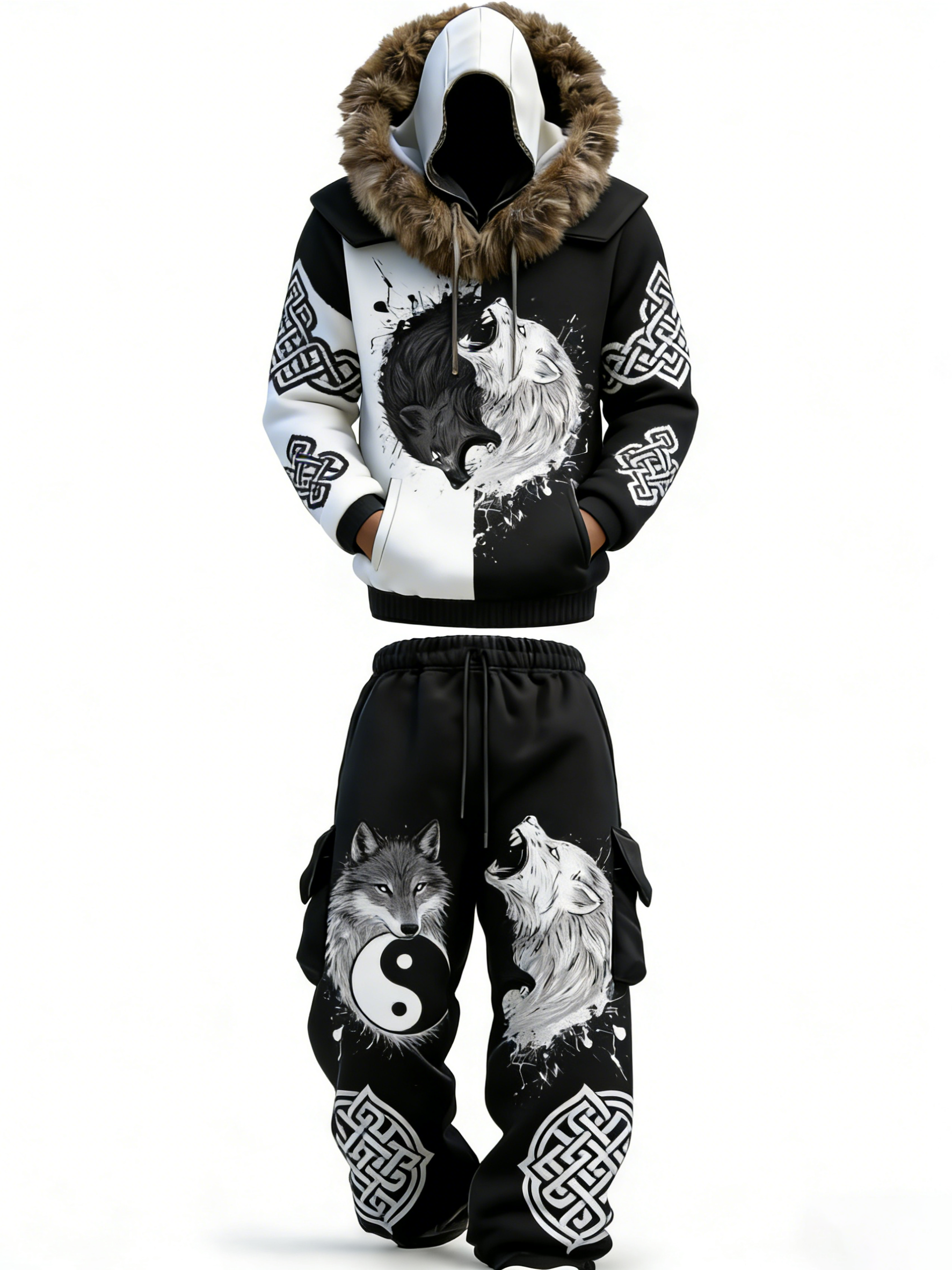 Men's Winter Warmth Faux Fur Hoodie and Pants Two-Piece Set 6649