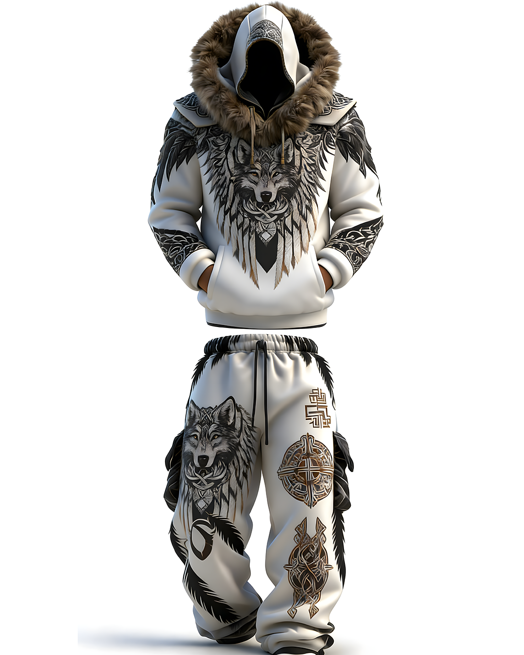 Men's Winter Warmth Faux Fur Hoodie and Pants Two-Piece Set8815