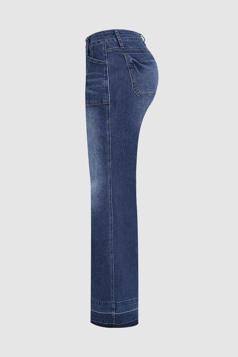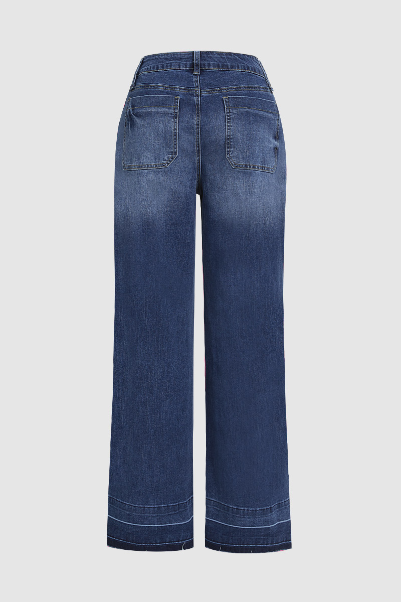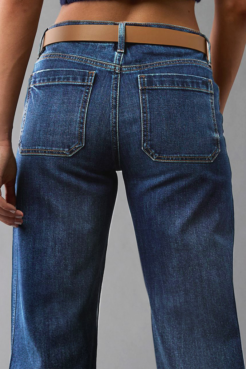 Wash Stitch Detail Mid Waist Wide Leg Jeans Without Belt 9ad1