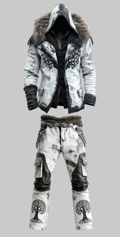 Winter Men's Fashionable Warm Leather Jacket + Leather Pants Set 5446