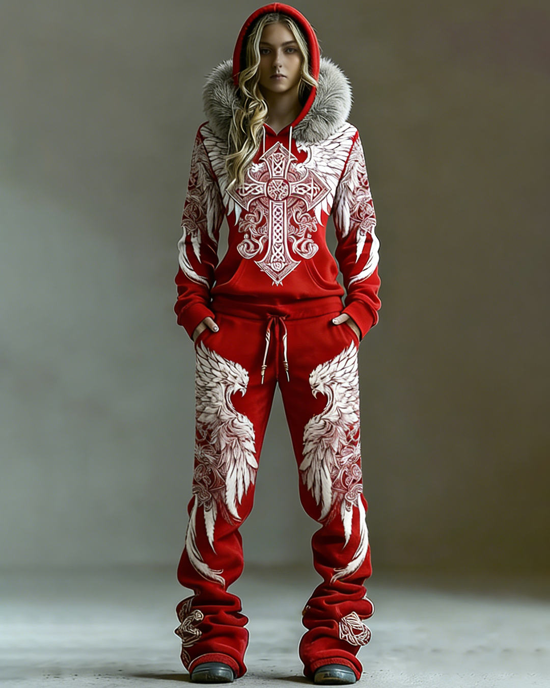 Women's Winter Warmth Faux Fur Hoodie and Pants Two-Piece Set 4434