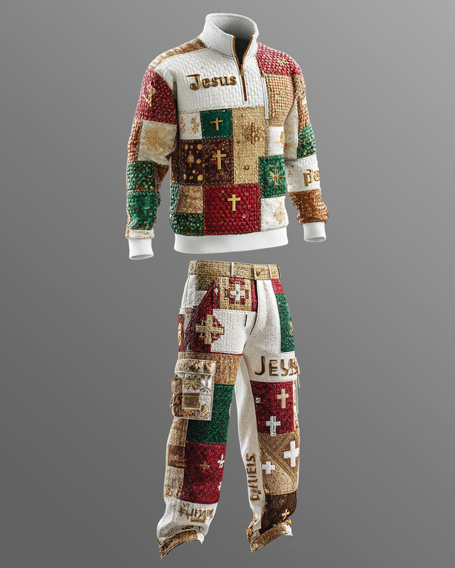 Men's Fall/Winter Geometric Patchwork Contrast-Color Suit 6131