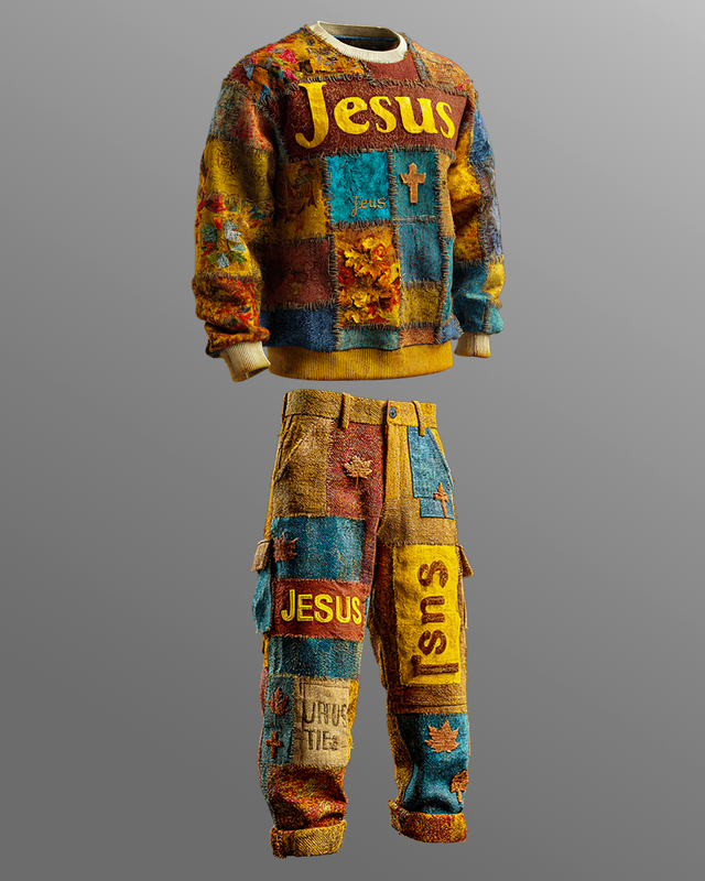 Men's Fall/Winter Geometric Patchwork Contrast-Color Suit 7801