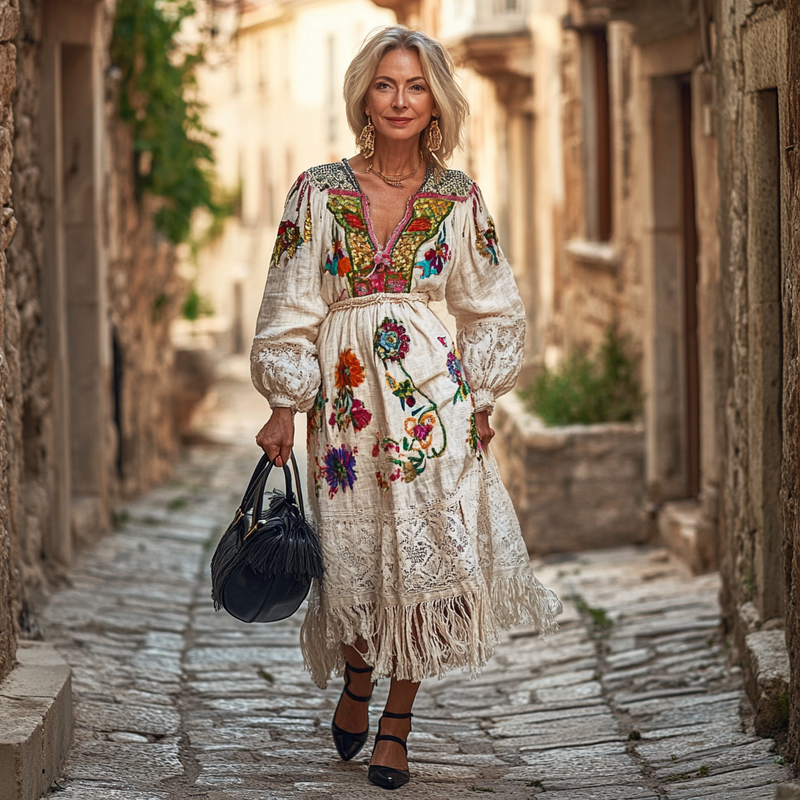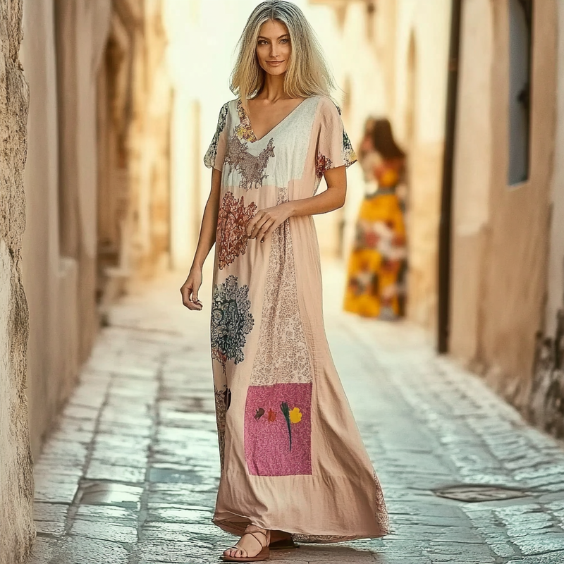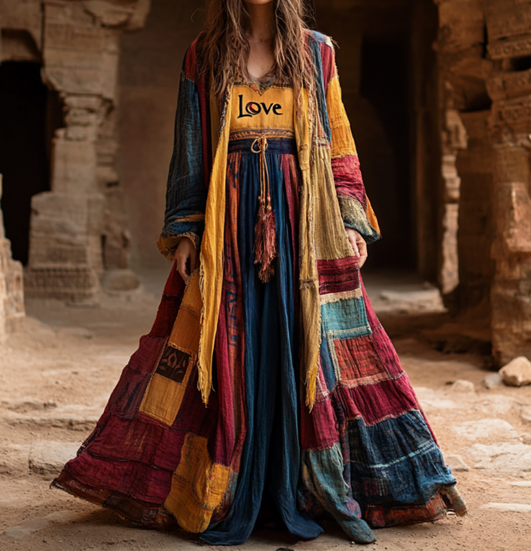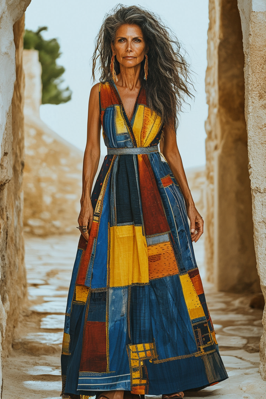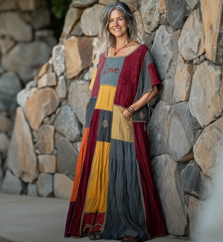Vintage Loose Linen Patchwork Dress