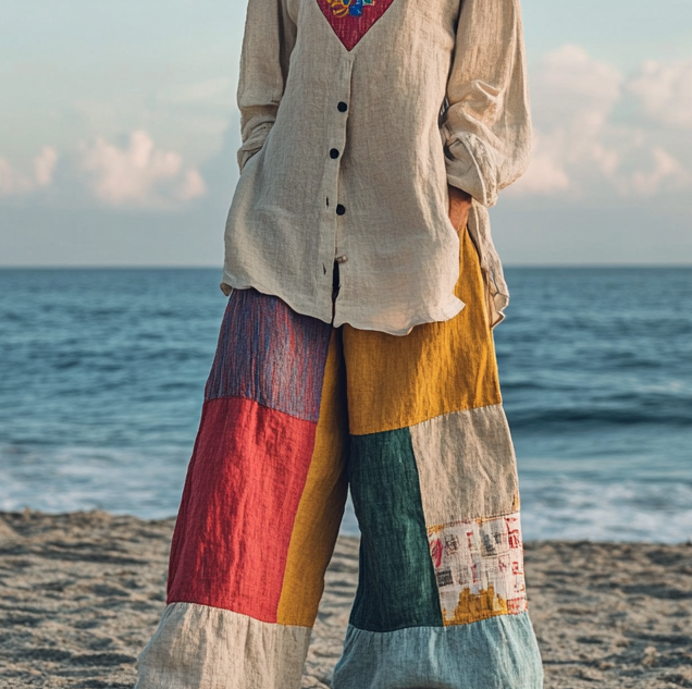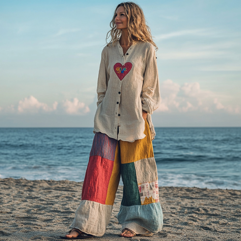 Comfort Vacation Oversized Linen Long Sleeve Shirt and Wide Leg Pants 5b9e