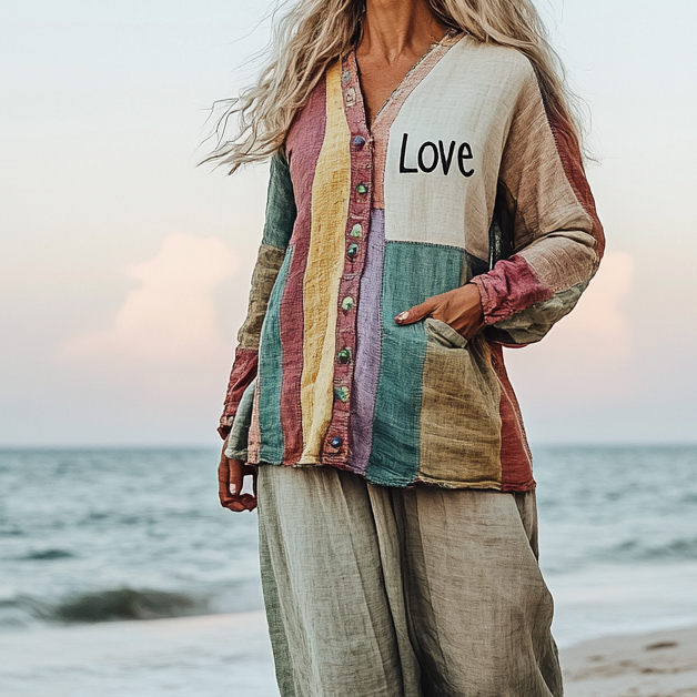 Comfort Vacation Oversized Linen Long Sleeve Shirt and Wide Leg Pants 72c8