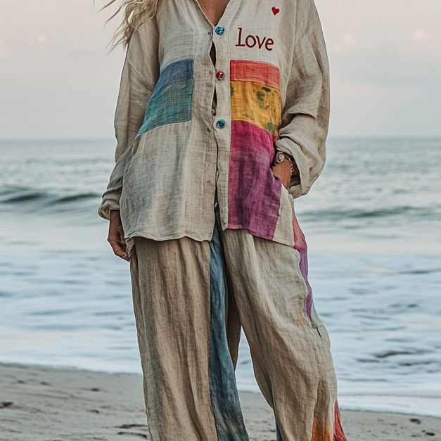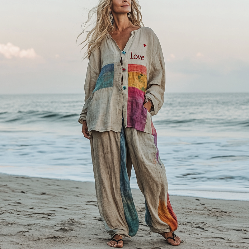 Comfort Vacation Oversized Linen Long Sleeve Shirt and Wide Leg Pants 8c39
