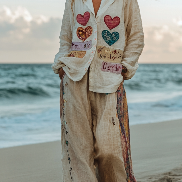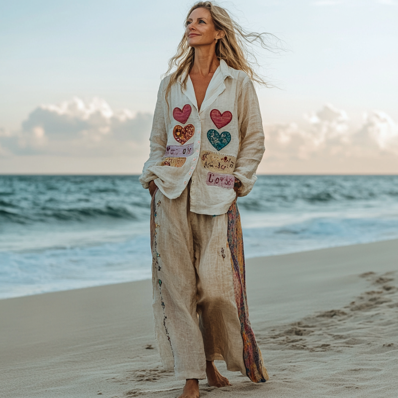 Comfort Vacation Oversized Linen Long Sleeve Shirt and Wide Leg Pants 9bdb