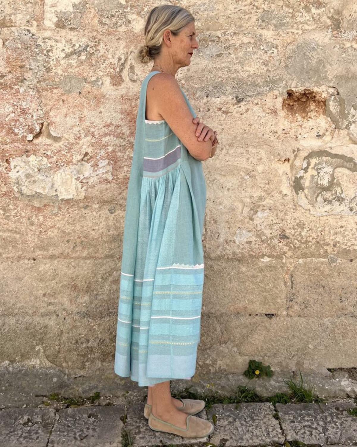 I have selected these dresses from the young designer Benedetta Rossi as I love the unique style, easy to wear attitude and the perfect match between tradition and originality. She enhances the colors of Salento and a special and sophisticated taste, thought for a real woman, unique, pure, strong and powerful and who are not afraid to show it. Manufacture and materials are strictly handmade, express a spontaneous, refined, eccentric and sunny femininity