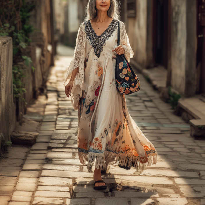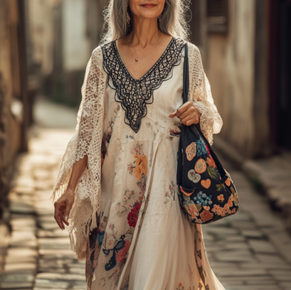 Vintage Loose Linen Patchwork Dress d318
