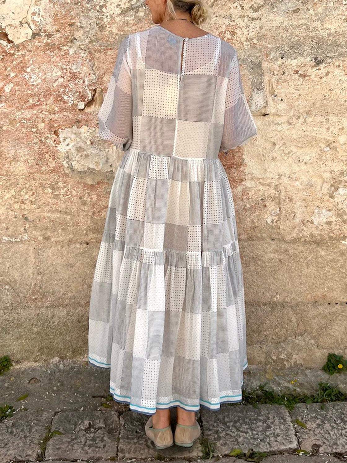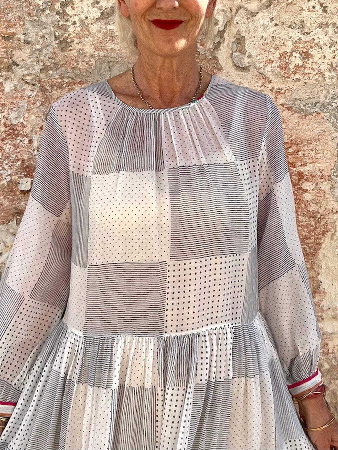Women's Plaid Polka Dot Long Sleeve Dress f566