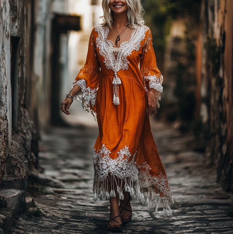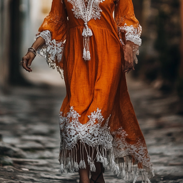 Vintage Loose Linen Patchwork Dress 628f