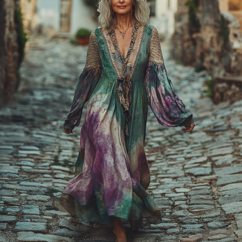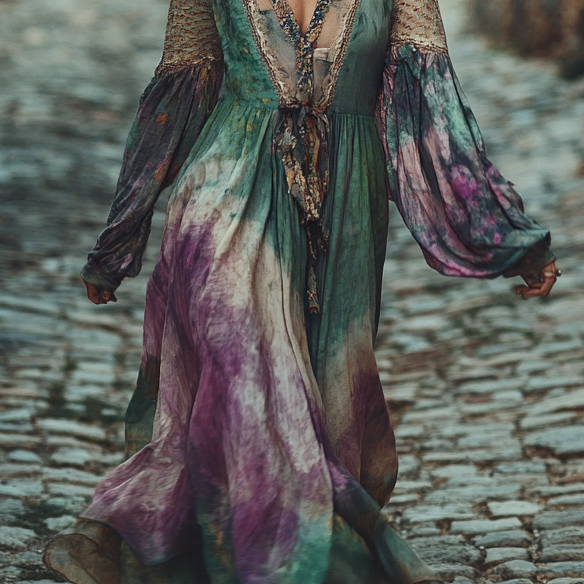 Vintage Loose Linen Patchwork Dress bf89