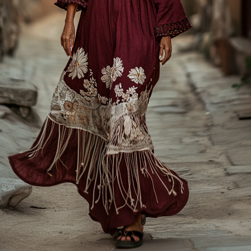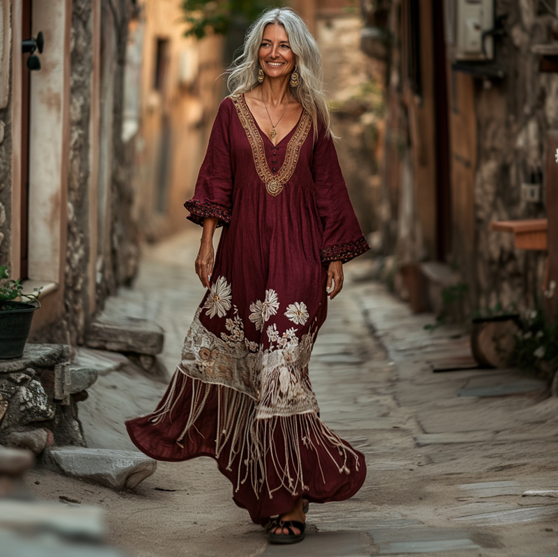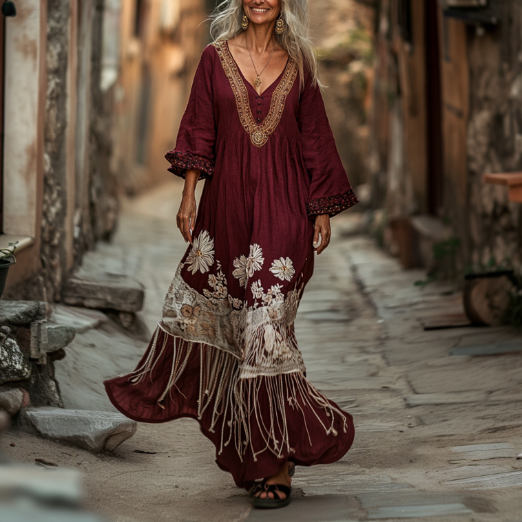 Vintage Loose Linen Patchwork Dress ff64