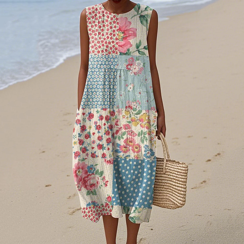 Vintage Loose Floral Patchwork Art Linen Tank Dress b6c4