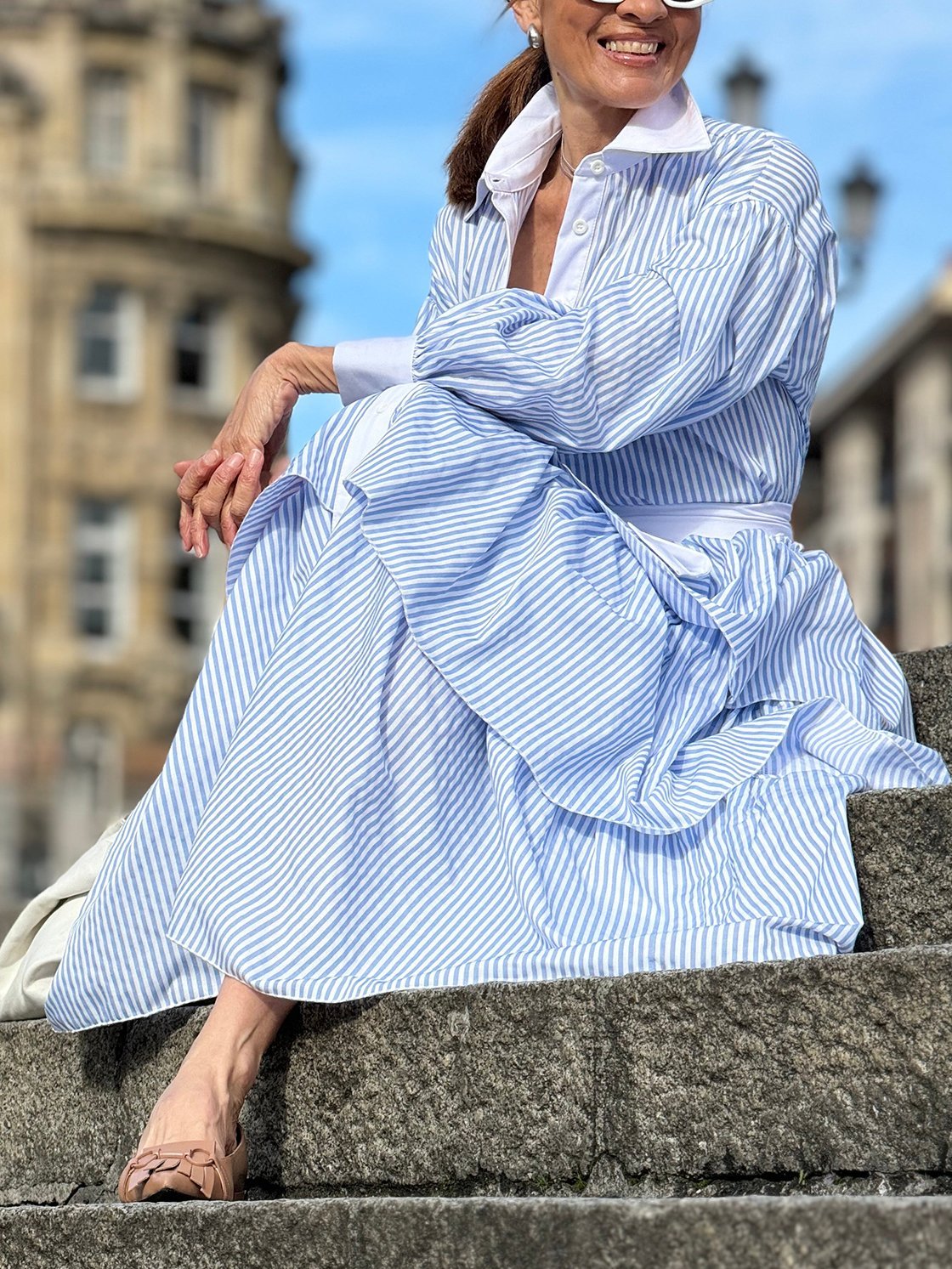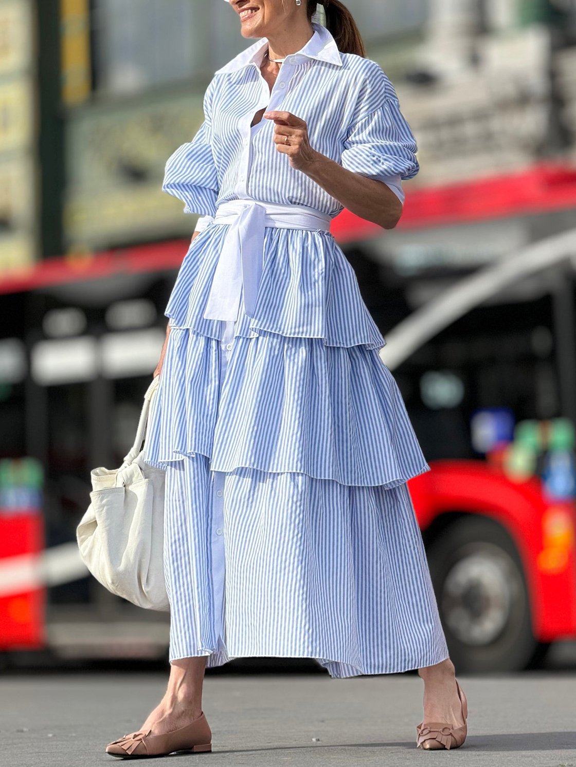 Women's Elegant Striped Long Sleeve Shirt Dress 8ae6