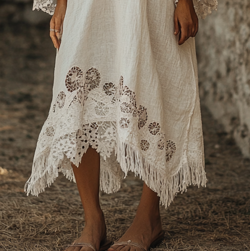 Vintage Loose Linen Patchwork Dress dbff