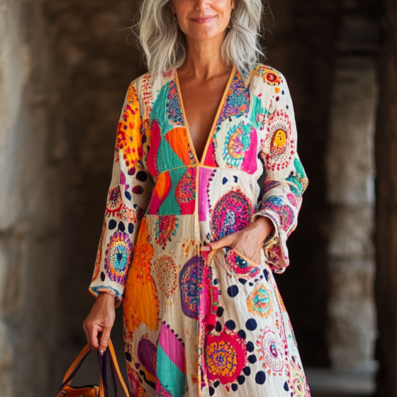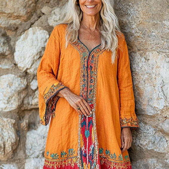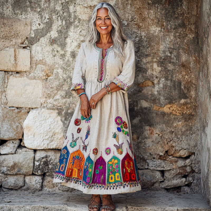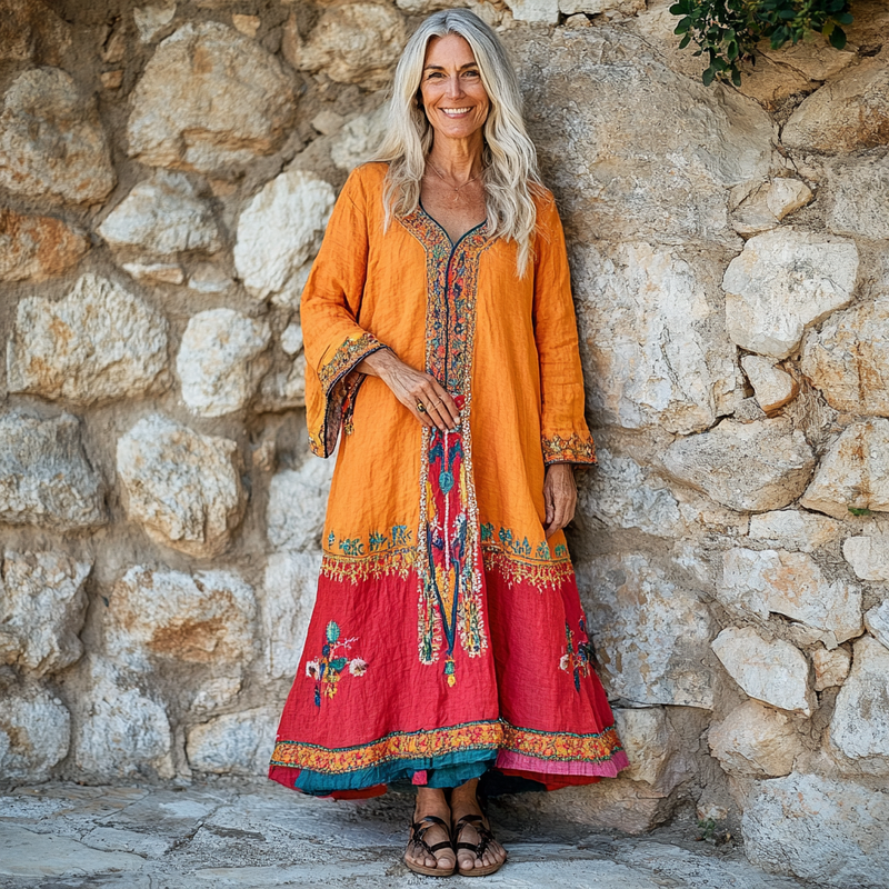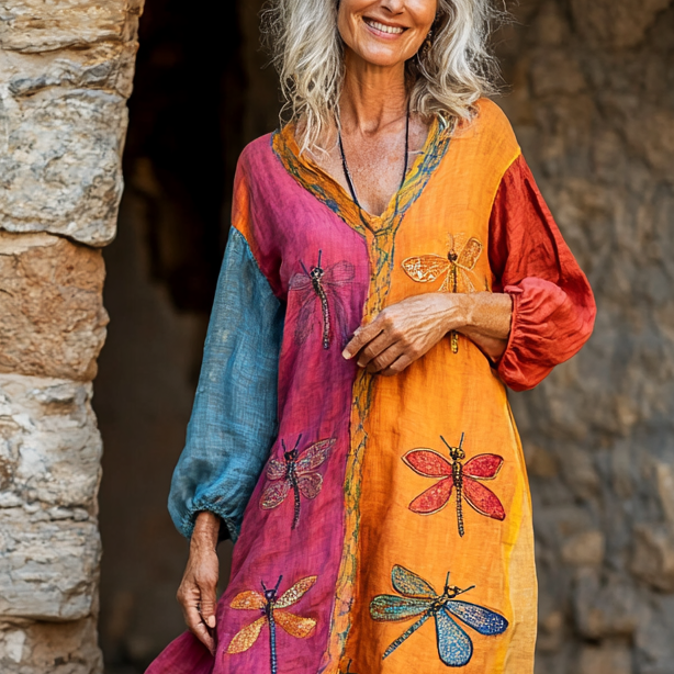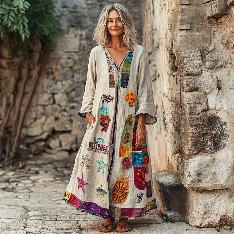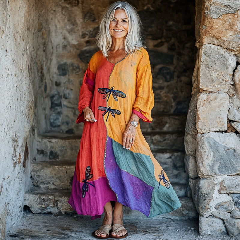 Vintage Loose Linen Patchwork Dress
