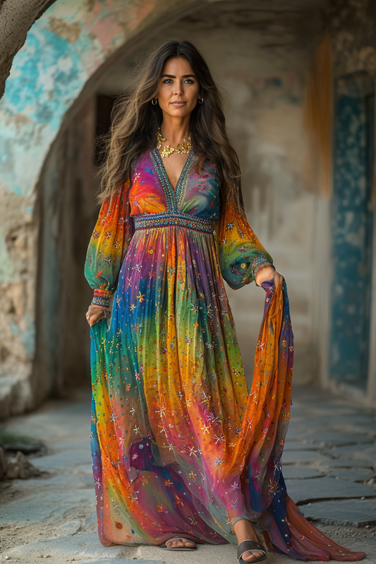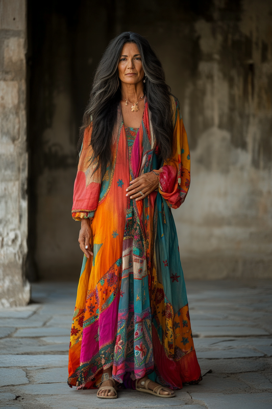 Vintage Loose Linen Patchwork Rainbow Contrast Dress 8981