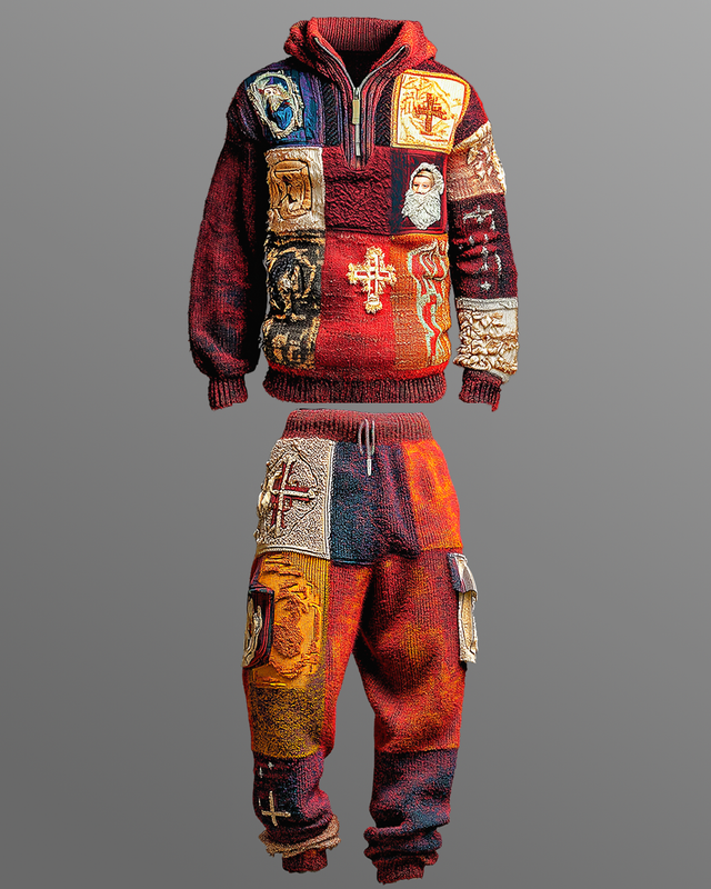 Men's Casual Faith Print Patchwork Set 4852