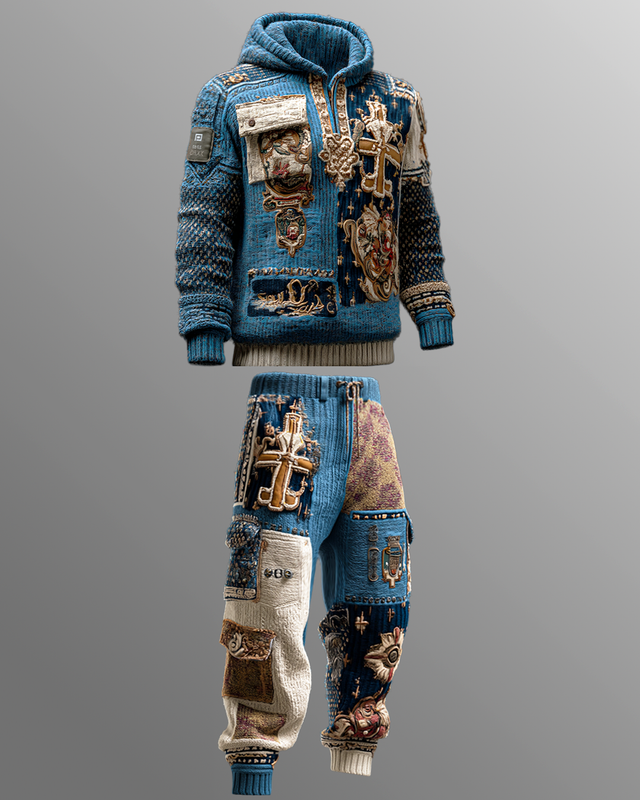 Men's Casual Faith Print Patchwork Set 5388