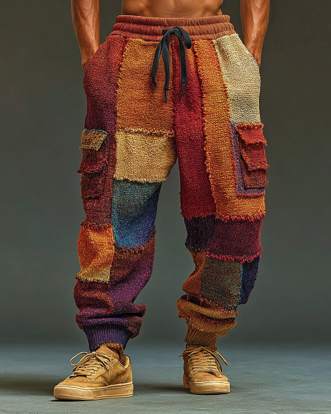Men's Winter Warmth Color-Block Faux Fur Hoodie and Pants Two-Piece Set 6869