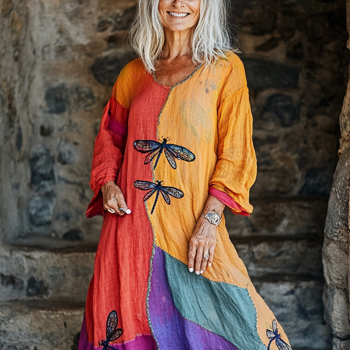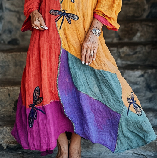 Vintage Loose Linen Patchwork Dress 8dc5